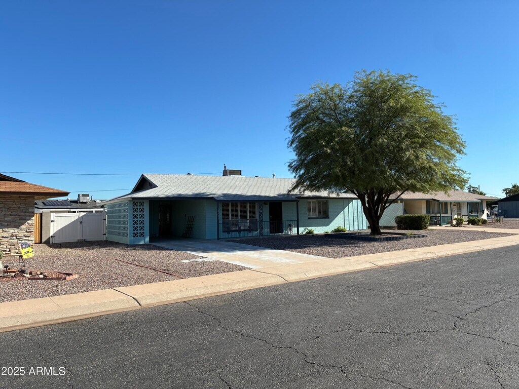 Discover modern living in this beautifully fully remodeled home for rent in Sun City,one of Arizona's premier 55+ communities. This stylish residence features 2 spacious bedrooms and 2 updated bathrooms,offering comfort and convenience in every corner. Step inside to find a bright,open-concept layout with brand-new flooring,fresh paint,and contemporary lighting throughout. Fully air-conditioned Arizona room with lots of windows to enjoy the Arizona sunsets. The remodeled kitchen is complete with stainless steel appliances,granite countertops,and custom cabinetry. Both bathrooms have been redesigned with sleek fixtures,walk-in shower and walk in jet tub in the master. Outside,enjoy a private,low-maintenance backyard that is fully fenced. Located in a quiet neighborhood,this home also includes covered parking and extra storage space. As a resident of Sun City,you'll have the opportunity to access world-class amenities including golf courses,swimming pools,fitness centers,and vibrant social clubs. Close to shopping,dining,and healthcare,this home offers the perfect blend of cozy and welcoming!