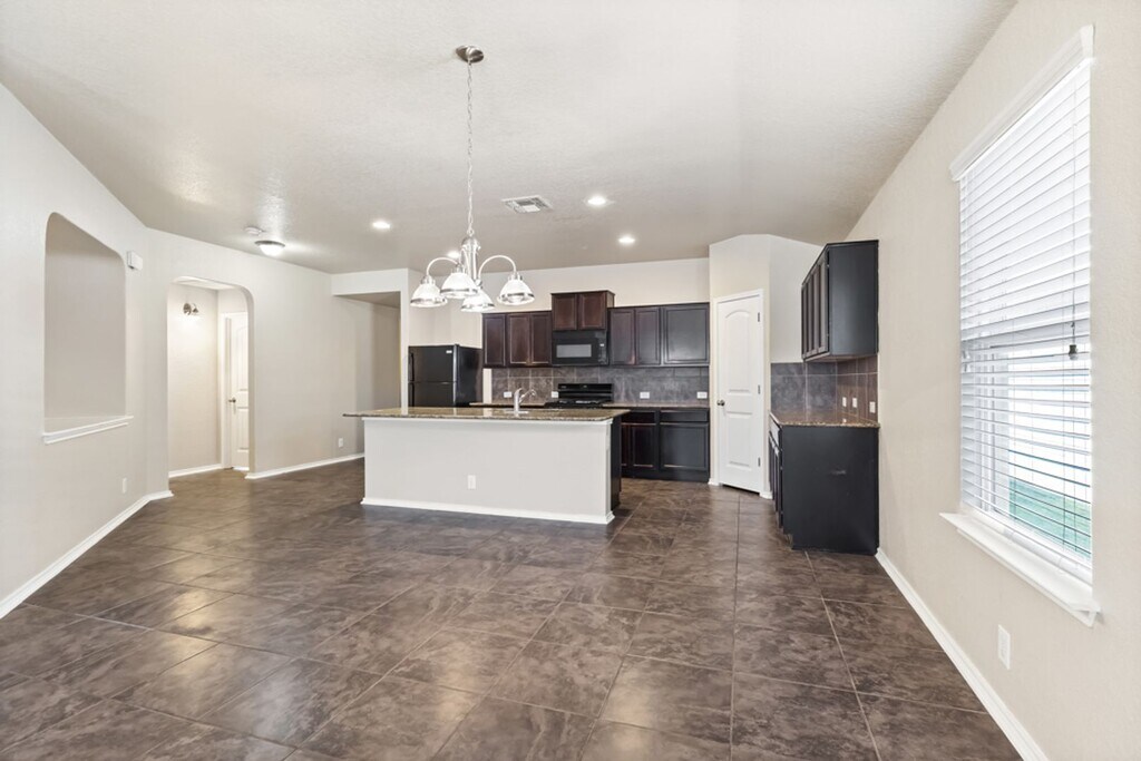 This single-story home offers a bright open floor plan with a comfortable living area that connects to an eat-in kitchen featuring granite countertops and a refrigerator included. The bedrooms are well sized, and a separate laundry room adds convenience. The primary suite includes a walk-in closet and a full bath with a garden tub. The large backyard includes a covered patio and sprinkler system, providing space for outdoor activities and gatherings. The community offers a pool and playground for additional recreation. Conveniently located near major highways, Seaworld, Northwest Vista, UTSA, shopping, dining, and entertainment, this home provides practical living in a well-situated neighborhood.