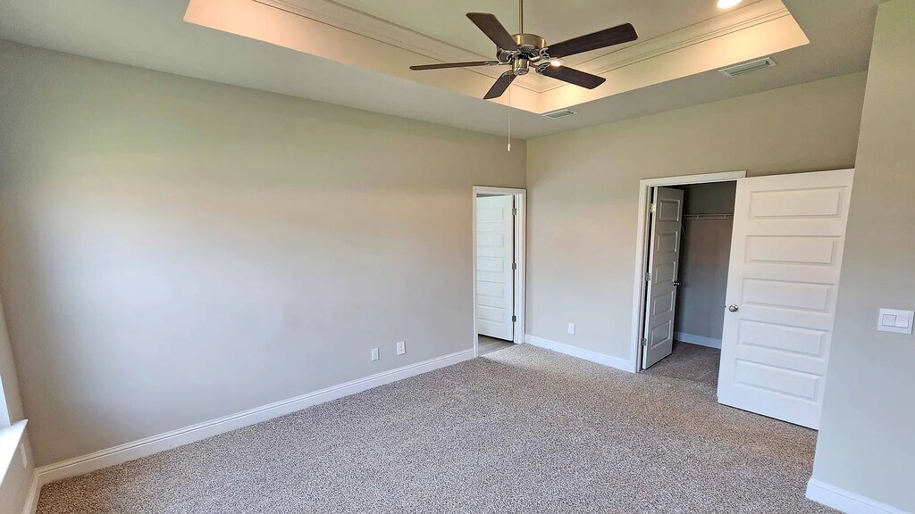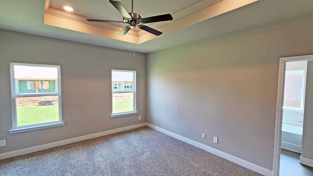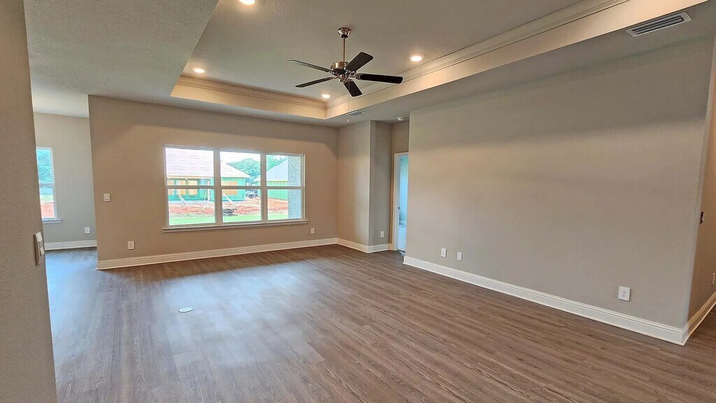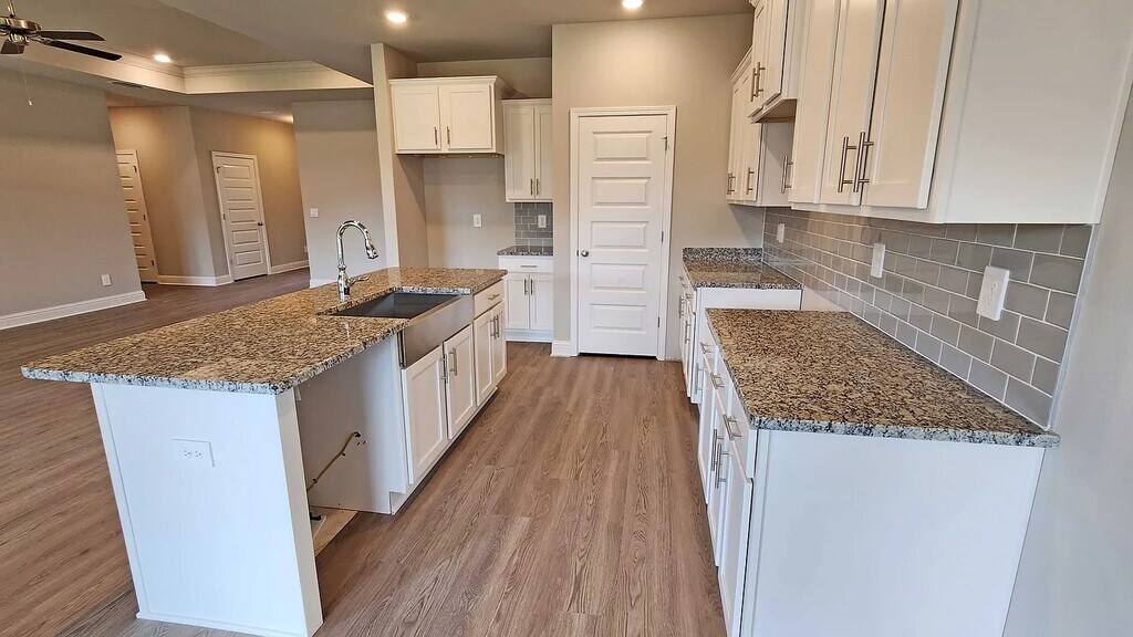 Charming 4-Bedroom Home – The Holly Floor Plan Welcome home to this beautiful 4-bedroom, 2-bath Holly floor plan offering over 1,900 square feet of comfortable living space. Designed with both style and practicality in mind, this home provides plenty of room for everyone to enjoy. As you step inside, you'll find a welcoming entryway with a handy hall closet. To one side is the laundry room with garage access, and to the other, a hallway leading to three spacious bedrooms and a full bathroom—perfect for family, guests, or a home office. The heart of the home is the open-concept living area, featuring a bright and airy space that flows seamlessly into the kitchen and dining area. From the dining space, you can step out onto the covered back porch, an ideal spot to relax or entertain. Tucked away on the opposite side of the home is the primary suite, complete with a large walk-in closet and a private ensuite bathroom, offering the perfect retreat after a long day. Pictures are of model home and are used for advertising purposes only. Schedule your showing now.