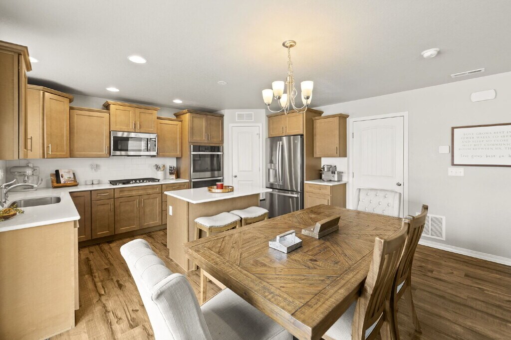Located in the Ventana community, this home is stunning. It has an open concept gourmet kitchen with stainless steel appliances and gas range top, beautiful subway tile backsplash, walk in pantry, tons of cabinets and an island with and eat in kitchen area that leads to the spacious living room and walk out to the back patio area. The main level also has a powder room, storage and access to the two car garage. Upstairs you have three spacious bedrooms including the owners suite with private on suite bathroom featuring double vanity, a soaking tub and walk in closet. In addition for convenience the upstairs has the laundry room. The home has a spacious privacy fenced back yard that will be getting new sod before tenant moves in. Community features are playgrounds, walking trails, community pool, gym, and disc golf.