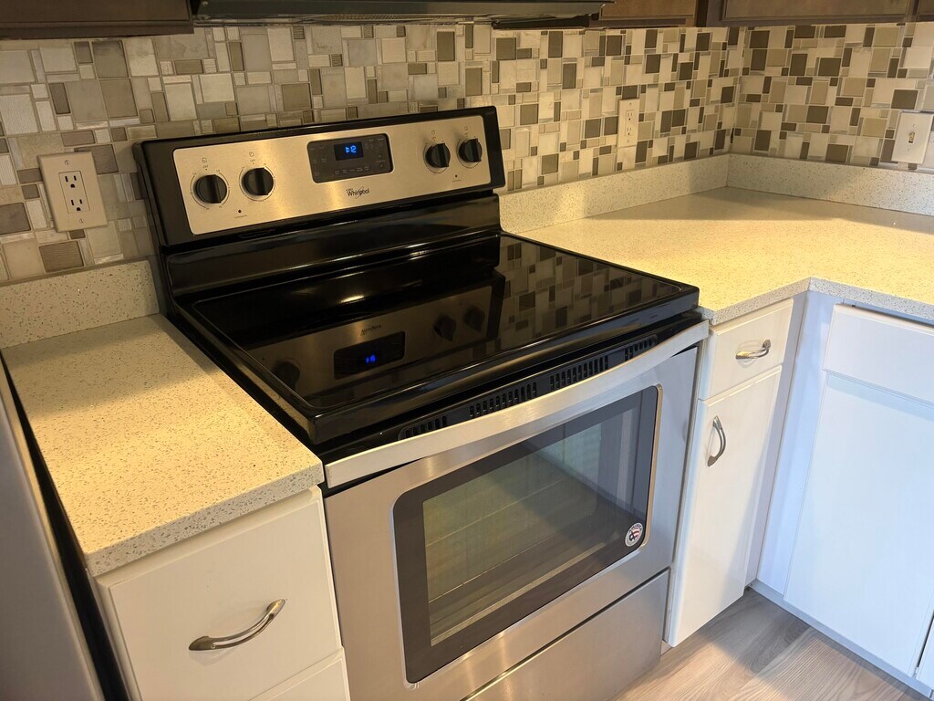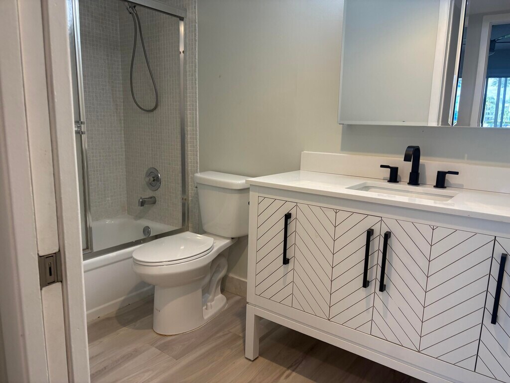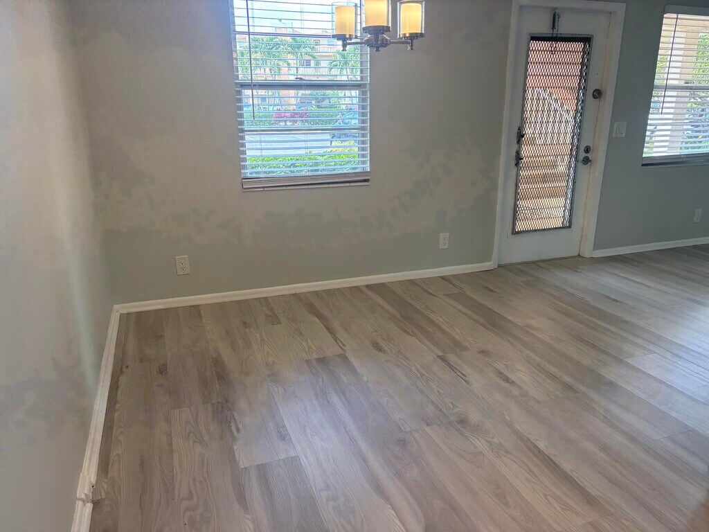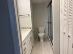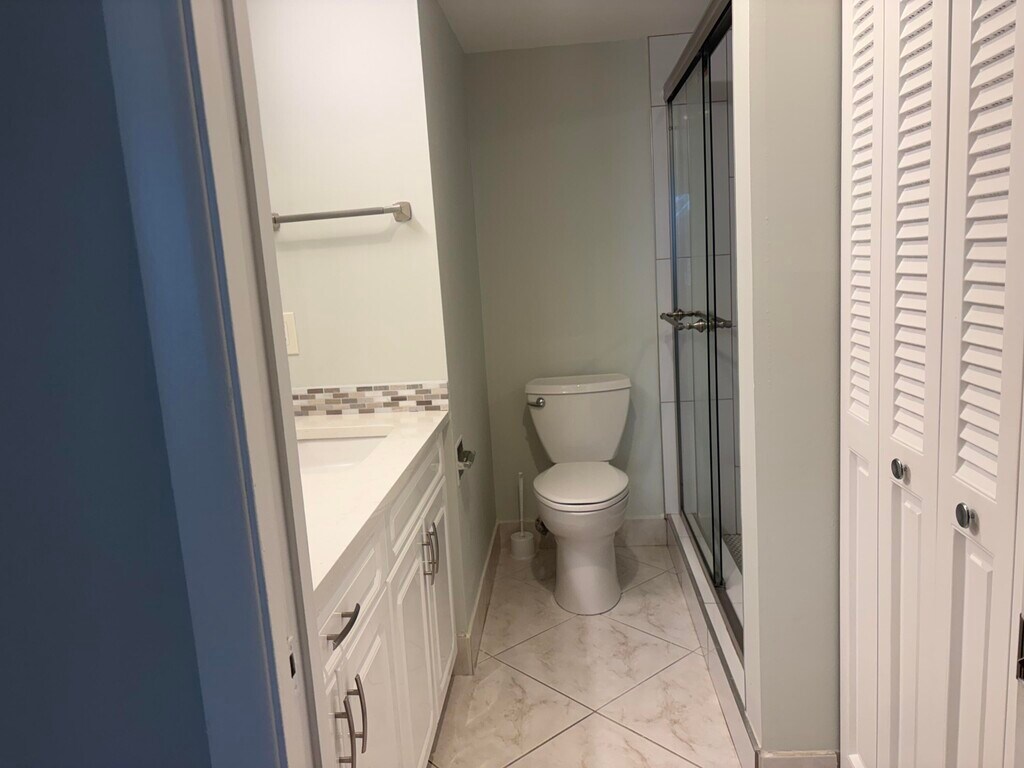 Just remodeled 2 bed 2 bath with new stainless kitchen appliances, water and ice in door. Quartz counters tops and remodeled spot lighting. All tiled living area and patio. Laminate floors in bedrooms. All new fans (5) throughout. Both bathrooms are remodeled new sinks with granite tops and seamless doors in stall shower. As a bonus their are glass sliders on patio with spectacular water view. Steps to bus,pool and parking Wi fy and cable include. Adult active clubhouse