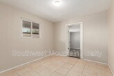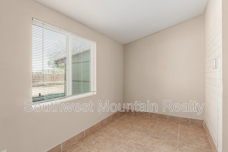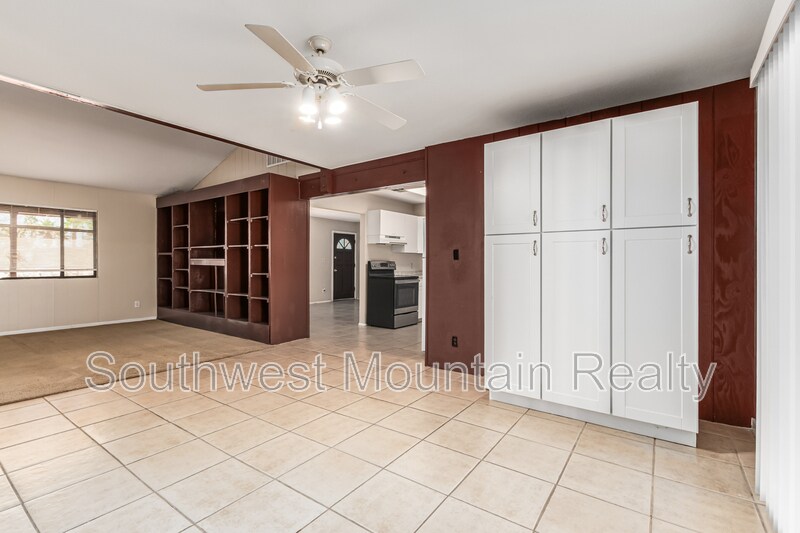 4 bedrooms (one can be office), 2 baths (one with tub and one with shower.) Very spacious home around 2000 soft. Big Family room like a great room for kids to play, living room, dining room with pantry shelves for lots of kitchen storage. Covered carport front and detached garage on side. Long back covered patio front and back with screens. Master bedroom and familyroon with carpets and rest tiles. Single level home (not manufactured/mobile home. ) Stucco walls most outside.