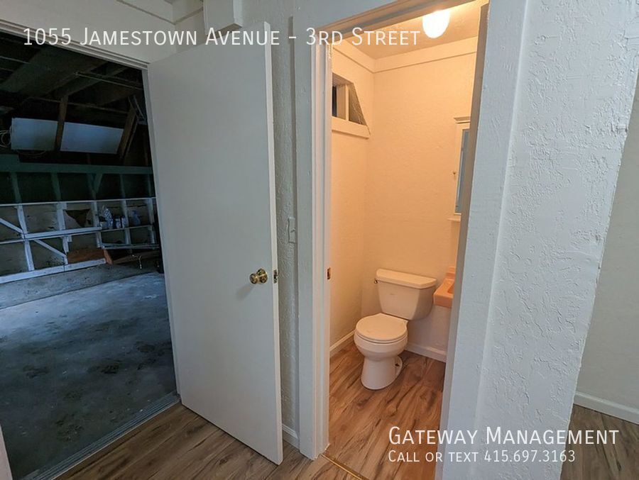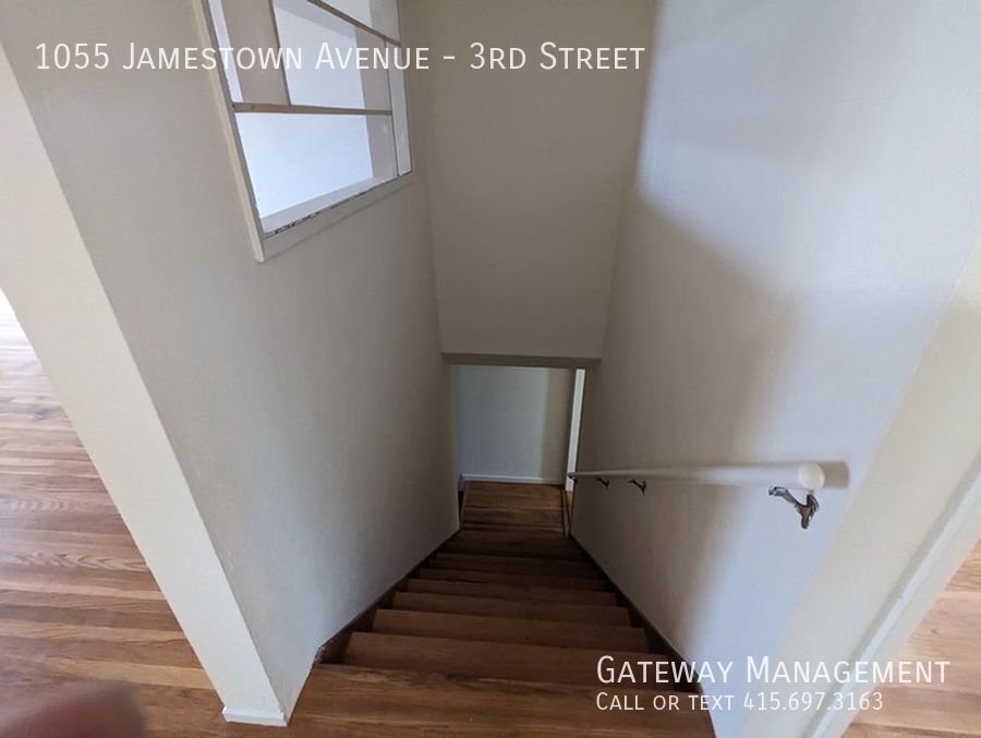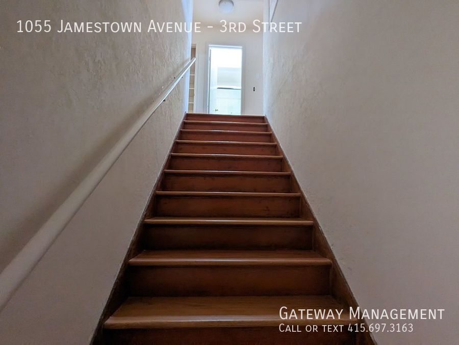 1055 Jamestown near 3rd St with parking Close to 101 & Brisbane with pano views of East Bay Hills This well kept house on the edge of Hunter's Point features 2 bedroom good light and hardwood floors. There is a huge well lit living room with hardwood floors which opens onto a dining area and alcove kitchen with lots of counter and cabinet space. The is a surprisingly nice view from these rooms of the East Bay Hills. The kitchen has a nice gas stove, lots of tiled counter and wood cabinet space as well as large side by side frig. It opens onto a large roomy dining room /living room. All these rooms enjoy a panoramic view of the neighborhood , bay bridge and east bay hills. The two bedrooms have good closet space and overlook the terraced garden in the backyard with a storage shed in far upper corner There is a automatic garage door opener. This large garage holds two work benches as well as the central heat unit and an extra room with half bath Huge steep driveway capable of holding more vehicles if needed on occasion. The downstairs has a half bath in small room which could be a den, office or a 3rd small bedroom The backyard has a cute shed at the top of the terraces with a good view. TRANSIT : 3rd street rail, less than two blocks away crosses the freeway to Sunnyside as well as connects to Market Street providing easy downtown, BART and CALTrain access. This street car offers easy access to both Ball Arenas, Mission Bay and the downtown. Great location for easy, effortless access to 101 or 280. NEIGHBORHOOD There are two nearby parks, Gilman Playground and Bayview Park. Hunter's Point neighborhood is fast improving are the other nearby neighborhoods of Little Hollywood, Candlestick, Bayview. Brisbane is also quite close. Best nearby restaurants are located on San Bruno & Cortland Avenues. The nearby main commercial 3rd street continues to become more vibrant with many new businesses. It is a one year lease. No utilities included Shown by appointment by Chris call More info at 3rd St Rail & Caltrain Nearby Easy 280/101 Freeway Access Great Room W/Pano View Large Garage & Driveway None Terraced Back Yard W/ View