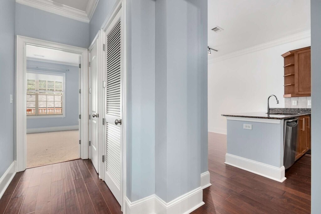 Experience a seamless blend of indoor comfort and outdoor living at Piedmont Crest, Midtown Atlanta’s boutique condominium directly beside Piedmont Park. This 787+/- square-foot, one-bedroom home includes an expansive 200+ square-foot private terrace—a rare feature that extends your living space and brings the beauty of the park and Midtown skyline even closer. Located on the first residential level, elevated above the parking deck for privacy, this residence offers an open-concept layout with engineered hardwood floors, stained wood cabinetry, and a large peninsula island with counter-height seating. A sliding glass door with sidelights fills the interior with natural light and connects effortlessly to the terrace, perfect for entertaining or quiet evenings under the skyline. The bedroom suite is thoughtfully designed for privacy, accessible via a side hall rather than directly from the living space. Inside, you’ll find custom closets, a double vanity, and a blend of tile and carpet flooring that adds warmth and function. Residents enjoy access to a fitness center, clubroom, and guest suite, as well as assigned, covered, gated parking. Piedmont Crest is recognized for its signature fountain along Piedmont Avenue and its exceptional location beside Atlanta’s iconic Piedmont Park, providing instant access to green space, the Atlanta Botanical Garden, and Midtown’s top dining and cultural destinations such as Colony Square and the Fox Theatre. Convenient proximity to Midtown MARTA and direct routes to Hartsfield-Jackson International Airport make this an ideal choice for professionals, park enthusiasts, or those seeking a sophisticated pied-à-terre in one of Atlanta’s most sought-after neighborhoods.