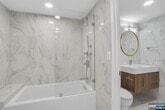 Fully renovated spacious two bedroom home with amazing NYC and GW Bridge views. This home features hardwood flooring, kitchen with quartz counter tops, stainless steel appliances, custom lighting, designer bathrooms, two balconies, two parking spots and tremendous upgrades. Amenities include doorman, pool, fitness center, tennis courts, basketball, paddle, community party room and more. Home has not been lived in since fully renovated and upgraded. Walking distance to the ferry. Ready to move in and an absolute must see.