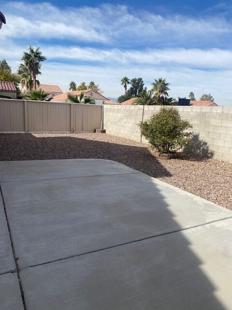 Charming single-story home featuring 3 bedrooms, 2 bathrooms, and a 2-car garage in an established community. Bright open floor plan with vaulted ceilings, spacious living and dining areas, and laminate wood flooring throughout main living spaces and bedrooms. Kitchen offers abundant cabinet storage, center island, tile flooring, and all appliances included. Large primary suite with double sinks and tub/shower combo. Secondary bedrooms are well-sized with ample closet space. Low-maintenance desert landscaping in front and back, plus private backyard with covered patio area perfect for relaxing or entertaining. Conveniently located near shopping, dining, schools, and easy freeway access.