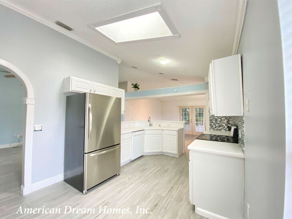 A beautiful four-bedroom and two-bath single family home with no rear neighbors (conservation area) in the Andover Lakes community. With tile throughout the living room and the dining room. The open floor plan provides a spacious living/dining room with high ceilings, skylights that provides lots of natural light. Crown molding, plant shelves, tile backsplash are some of the kitchen features. The curved breakfast bar offers additional seating. The family room is conveniently open to the kitchen and offers access to the patio making this perfect for entertaining friends and family! Master bedroom is generously sized and offers a featured wall, neutral paint and a ceiling fan. Primary en-suite includes a dual sink vanity, updated light fixtures, and a garden tub as well as a separate shower and walk-in closet. The split floor plan offers three sizeable bedrooms and a second full bathroom. French doors in the dining room lead out to the completely covered and screened-in back porch with peaceful views of the conservation area. The perfect space to sit back and relax listening to the sounds of nature after a long day. The backyard is fully fenced and has tons of space and gorgeous mature trees that provide amazing shade in the hot summer days! Andover Lakes is a charming community featuring a playground, basketball and tennis courts. It is centrally located with quick access to SR 417, SR 408, SR 528, the Recreation Area at Andover Cay, Young Pine Community Park, and a short drive to the popular Waterford Lakes Town Center, Valencia College, UCF, Downtown Orlando, shopping, dining and more. Schedule a showing and make this dream home yours! **Please note there will be a $150 monthly lawn maintenance fee ($100 mowing the lawn twice monthly in the spring, summer, and fall and once monthly in the winter.) plus monthly management fee ($50 to be paid from the tenant to the management company) in addition to the monthly rent for this property. **Please do not pay application fees when you submit applications online. You can skip the application fee payment tab and still submit applications online. If you pay application fees online without reading this message carefully, we will not refund the application fees because we will also get charged a fee when we refund the application fees.**