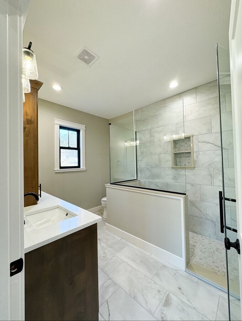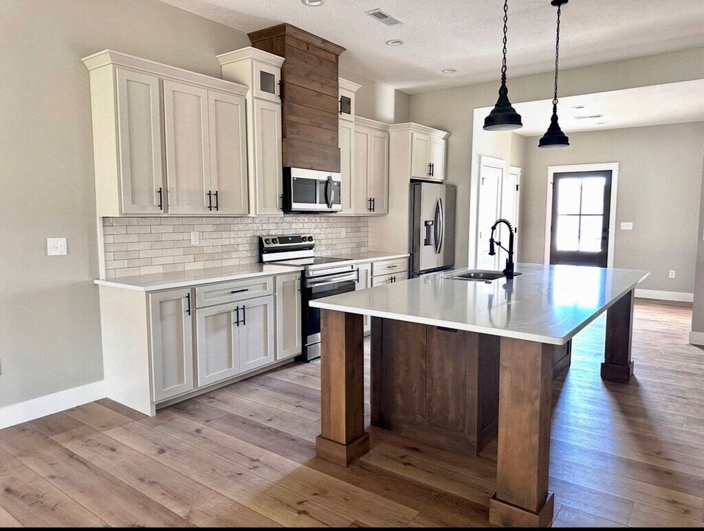Each unit features: ? 1900 square feet with some 10 foot ceilings ? Large 1/2 acre lots ? Two car oversized garage with attic storage above ?Three large bedrooms ?Two full baths ?Custom cabinetry with granite countertops ? Solid surface flooring throughout (no carpet) ?The open kitchen has a walk-in pantry, large island, and stainless appliances. ?A private entrance on each side and a private back patio ?The primary bedroom is large with a private bath, walk-in shower, and oversized walk-in closet ? Zero step entry from the garage to the inside. ? High speed fiber internet ? Efficient heat pump ? Plus several other top of the line features *Some pictures may not be exact color, but every unit is similar*