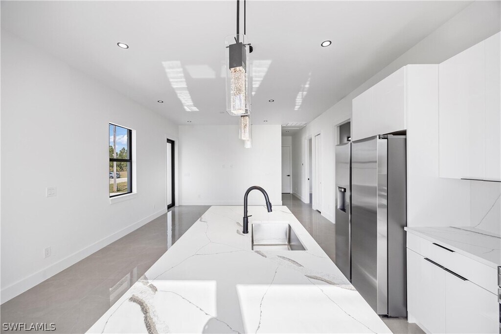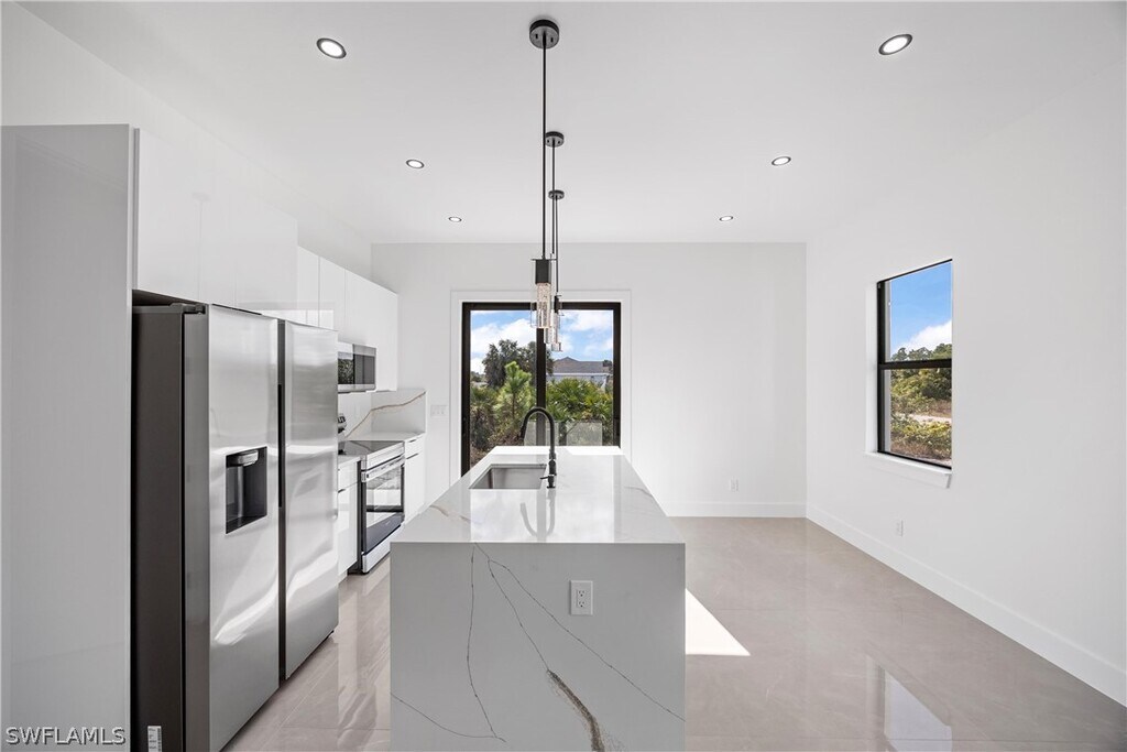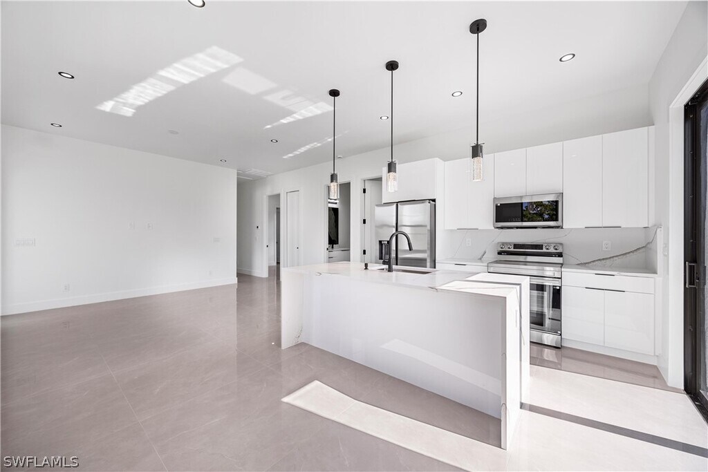 NEW CONSTRUCTION RENTAL,luxurious contemporary home situated on a large lot,offering extra space,privacy,and great appeal. PRIME LOCATION!! 2 minutes drive to the Mobil Gas Station and 82 RD,making errands quickly and essay. This home is impeccably designed and built with attention to every detail. All lights throughout the home are LED,all doors and windows are high impact and includes a sprinkler system. The open floor plan seamlessly blends indoor & outdoor living. Impeccable white 36x36 porcelain title floors with membrane under tile,which prevents cracks from wear and tear. Expansive living room with high 8" interior and exterior doors. The kitchen boasts gorgeous 42" solid wood soft close cabinets with quartz countertops,a broad counter height island along with stainless steel appliances. This home is approximately 10 minutes' drive to the main shopping centers,restaurants and retail areas,APPLY NOW !!!!