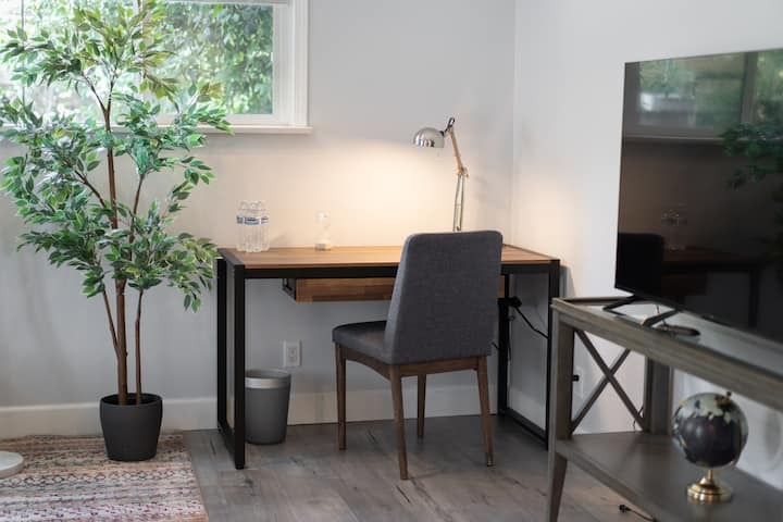 FULLY FURNISHED, SHORT-TERM or LONG-TERM RENTAL: CHARMING UPGRADED 1-BEDROOM HOUSE IN GLENDALE (p55) THIS IS A FULLY-FURNISHED HOME AVAILABLE FOR SHORT-TERM MONTHLY RENTAL. BELOW ARE THE MONTHLY SEASONAL RATES: - SPRING (FEB to MAY): $3,600 - SUMMER (JUN, JUL, AUG): $3,800 - FALL (SEP, OCT): $3,400 - WINTER (NOV, DEC, JAN): $3,200 There are two homes on the lot, they do not share any walls and this home is the rear property on the lot. Every ZANOZA home is fully furnished, available on a month-to-month basis, and includes: - 24/7 CUSTOMER SUPPORT VIA TEXT, EMAIL, OR PHONE - ON-CALL HANDYMAN - FULL KITCHEN STOCKED WITH ALL ESSENTIALS, FROM COFFEE TO COOKWARE - LUXURY TOWELS, LINENS, AND BEDDING - BATHROOM ESSENTIALS - OUTDOOR BBQ GRILL - OUTDOOR FURNITURE - WASHER/DRYER - ROKU HD TVS WITH NETFLIX & AMAZON PRIME STREAMING IN ALL BEDROOMS AND LIVING ROOM - HIGH-SPEED 100 MBPS WIFI - PETS WELCOME (Additional fee) - SECURITY DEPOSIT: $1,500 MINIMUM (UPON APPROVED SCREENING REPORT) - Cleaning fee $300 The space PROPERTY HAS BEEN CLEANED AND DISINFECTED IN ACCORDANCE WITH CDC GUIDELINES AND AIRBNB ENHANCED CLEANING PROTOCOLS. This property is 725 Sq ft This hip 1-bedroom home has an elegant ambiance that our designers have meticulously crafted to make your stay just a tad more special. Please note that there are TV's in the bedroom and living room for you to enjoy. Includes a big yard fenced yard to enjoy the outdoors or BBQ. Foodies will love our spacious kitchen that boasts a gorgeous quartz stone counter, deep kitchen sink, and stainless steel refrigerator. Get ready for a good night’s sleep you deserve. All our bedrooms are fitted with 12” memory-foam beds, big-screen smart TVs in all bedrooms and living room, Wi-Fi, and comfy fresh linens. No sweat if you forgot to bring travel essentials with you. We want you to feel at home when staying at a Zanoza property and have prepared top-notch amenities for your stay, including eco-friendly bath products, bath linens, a fully stocked kitchen, and much more. Located nearby Griffith Park with the famous Observatory (5 minutes), the legendary Hollywood sign, and LA Zoo (5 minutes), as well as Universal Studios (15 min), and many more LA attractions. OTHER PROPERTY DETAILS: SIZE: 725 Sq ft HEATING: Central Heating AIR CONDITIONING: Central AC Guest access You will have access to the entire house, with no inaccessible rooms, or locked closets. By the time you leave, you'll feel like you're leaving your own home. Other things to note NOTE: - This house is the rear property out of two structures on the lot. - No walls are shared and there is ample space between the two homes. -Street parking only. - For long-term guests, ALL UTILITIES ARE INCLUDED up to $500/month. utilities include Power/Electricity, Water, Gas, Sewage, Garbage, and Internet EV-CHARGER USAGE RATES/POLICY: EV-Charger usage cost is NOT included in property rental rates. Usage will be tracked via the "Smart Life" app and will be billed separately at the lowest tier rate available (approximately $0.21 per kWh).