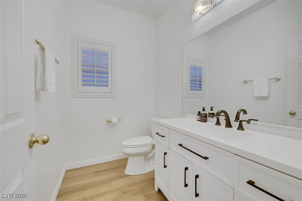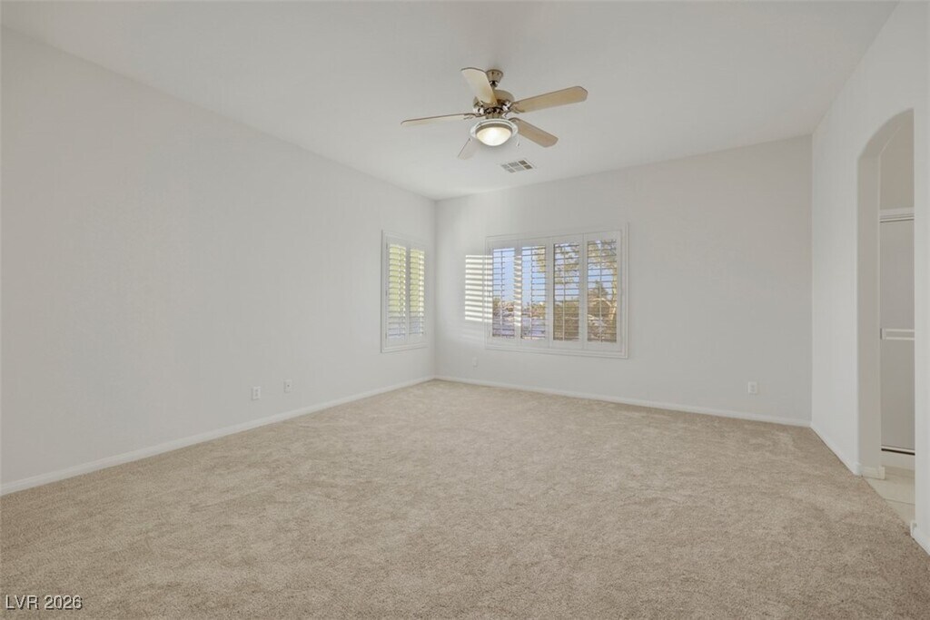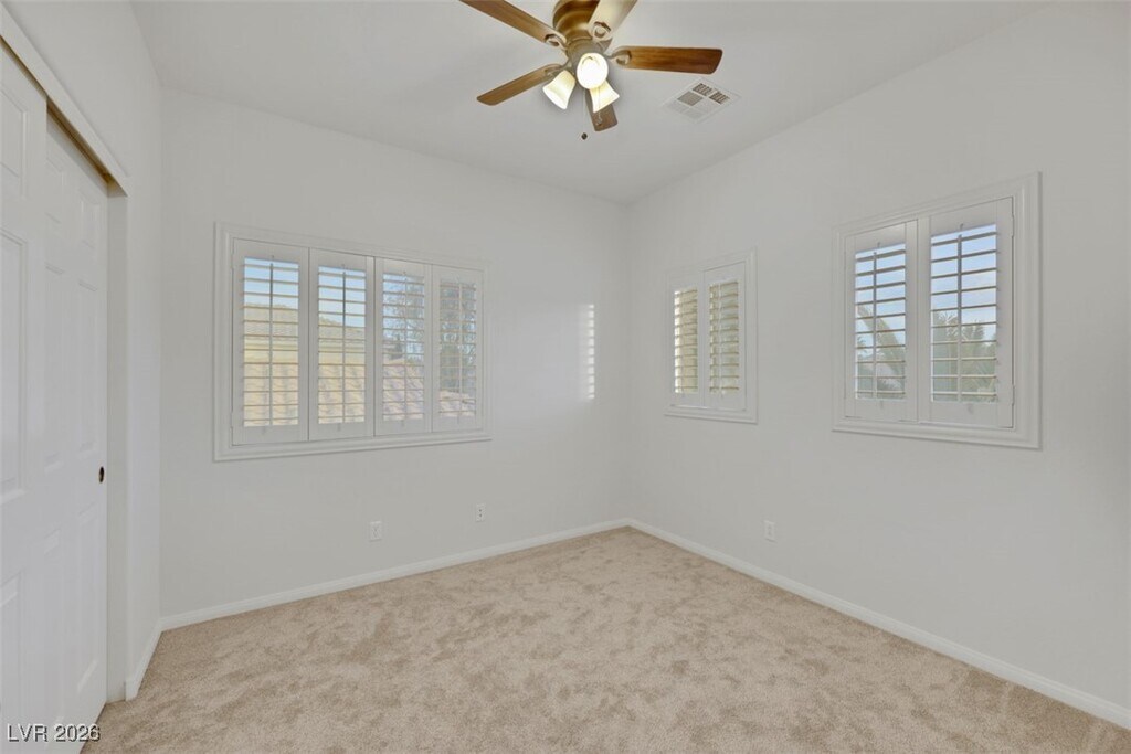 Beautiful 4 bedroom, 3 bath home in Countryside by Desert Bloom Park! Walk in to soaring vaulted ceilings & fresh paint. There are views of the mountains and the Las Vegas strip from all North facing windows! The kitchen offers an island with granite countertops, stainless steel appliances and open to the great room! The main floor has luxury plank flooring, an updated half bath, a walk in (under the stairs) closet and a bright living area! Upstairs you will find all brand-new carpet. The primary suite has panoramic views and a walk-in closet. Large covered patio.