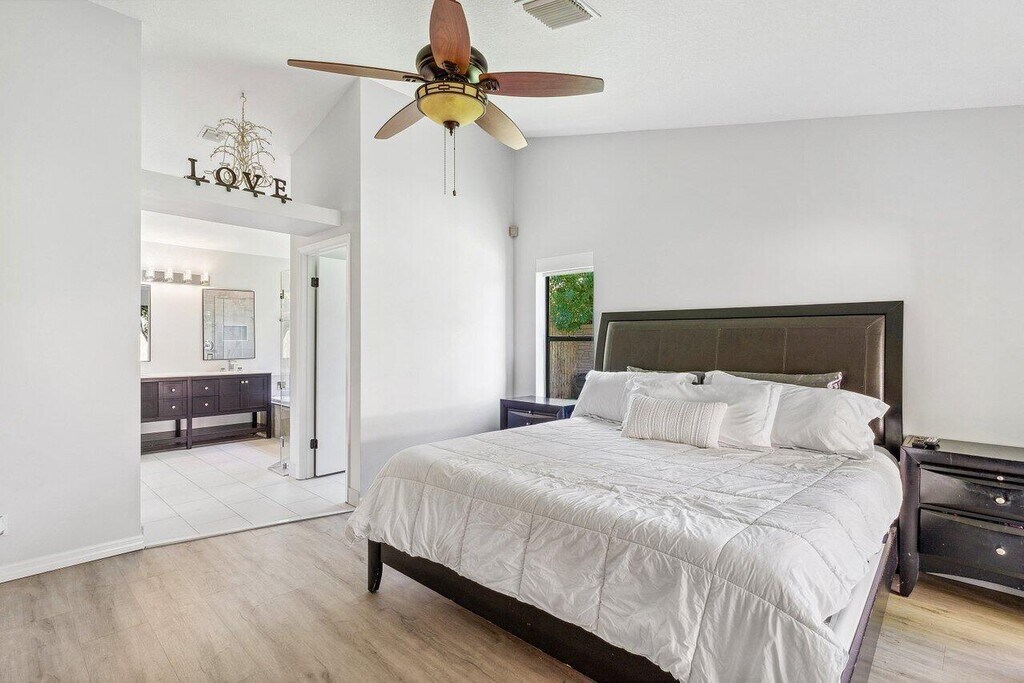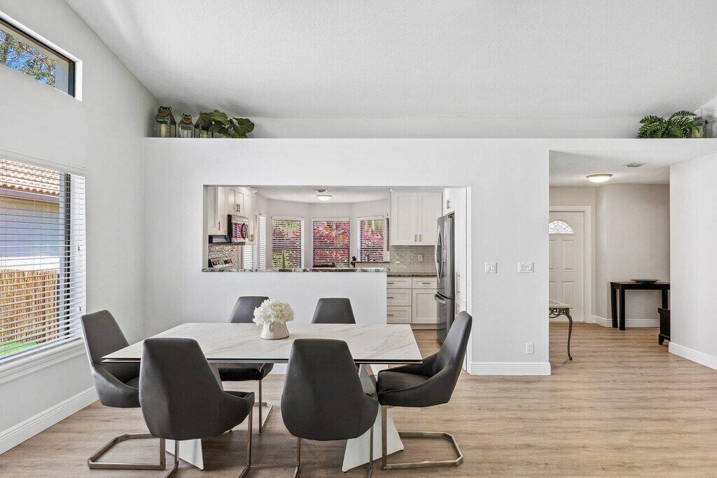 GORGEOUS, CLEAN, LIGHT AND BRIGHT AND COMPLETLEY UPDATED SINGLE STORY HOME IN MISSION BAY! Open floor plan with large windows overlooking the large open garden area with artificial turf and fully fenced in yard. Kitchen has quartz counter tops and stainless-steel appliances. Walk or bike ride to the vibrant resort style clubhouse offering free fitness classes, fitness room, clubhouse, sauna, basketball, tennis, multipurpose field, pickleball, large lakeside pool and kids pool all included in your rent! Lawn care included in rent as well.