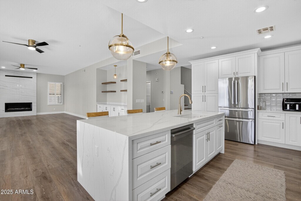 Immaculate spacious home with sparkling pool/spa and easy care landscape including artificial turf and Golf putting green! Large covered patio with built-in grill! Primary ensuite features large walk-in closet,spacious bathroom with double sinks and soaking tub. Vinyl plank flooring throughout. Perfect location in North Scottsdale. Close to walking paths,just minutes from the 101 freeway and close to Scottsdale Quarter and Kierland shopping centers.