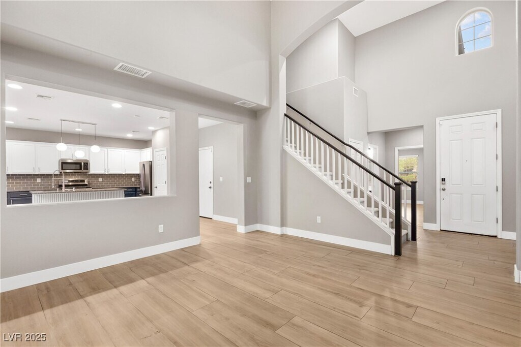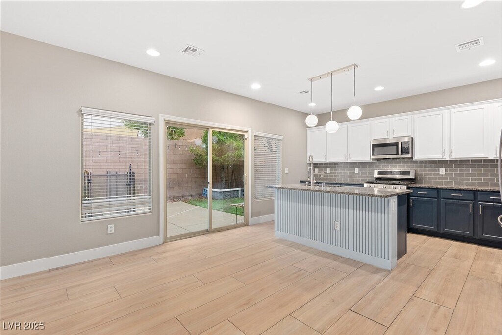 Experience modern living in this beautifully upgraded four-bedroom, three-bathroom home located in the highly sought-after Mountain’s Edge community. Thoughtfully designed with contemporary style, it features custom wood accent walls throughout, adding warmth, character, and a designer touch to every space. The open-concept kitchen is a true standout, offering granite countertops, a stylish custom backsplash, an oversized island, and a cozy breakfast nook. All appliances are included. A desirable downstairs bedroom and full bathroom provide flexibility for guests. Upstairs, you’ll find spacious secondary bedrooms and a well-appointed primary suite. The backyard is an entertainer’s dream, featuring a refreshing pool ideal for summer gatherings, relaxing weekends, and year-round enjoyment. With sleek finishes, upgraded touches in every room, and a functional layout, this home offers both style and comfort in a prime location close to parks, trails, shopping, and dining.