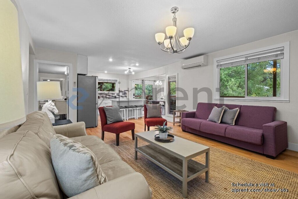 This property is available. Please inquire on this site to schedule a showing. Nestled in the serene surroundings of Forestville, CA, Unit B at 10590 River Dr offers a perfect blend of modern comfort and rustic charm. This inviting two-bedroom, one-bathroom unit features a beautifully updated kitchen with sleek stainless steel appliances, a spacious island, and elegant white cabinetry that complements the chic backsplash. The open-concept living area is enhanced by natural light streaming through large windows, creating a warm and welcoming atmosphere. Enjoy peaceful evenings on the private deck surrounded by lush greenery, or take advantage of the spacious dining area for entertaining guests. The property’s exterior is as impressive as its interior, with a charming wooden facade that blends seamlessly into the surrounding landscape. Residents will appreciate the convenience of an in-unit washer and dryer, ample storage space, and the added privacy of a fenced yard. Heating and AC through a new split system. Located in the heart of the Russian River Valley, this home provides easy access to local wineries, hiking trails, and the vibrant community of Forestville. Whether you’re seeking a tranquil retreat or a base for outdoor adventures, this rental property offers an idyllic setting to call home. Property is available for rent as furnished, with an additional charge of $250 in rent. Available: NOW Heating: Other, HeatPump Cooling: Central Appliances: Refrigerator, Range Oven, Microwave, Dishwasher Laundry: In Unit Parking: Off Street, On Street, 2 spaces Pets: Dogs Allowed, Cats Allowed Security deposit: $2,300.00 Included Utilities: Water, Landscaping Additional Rent/Person for Utilities: $50.00 Additional Deposit/Pet: $500.00 Disclaimer: Ziprent is acting as the agent for the owner. Information Deemed Reliable but not Guaranteed. All information should be independently verified by renter.