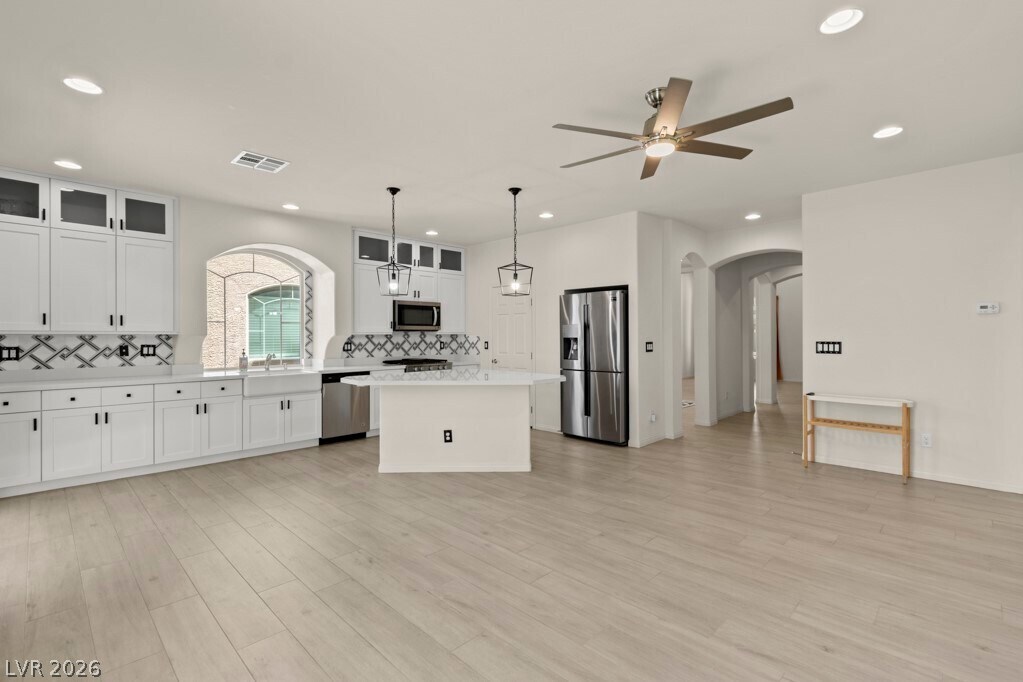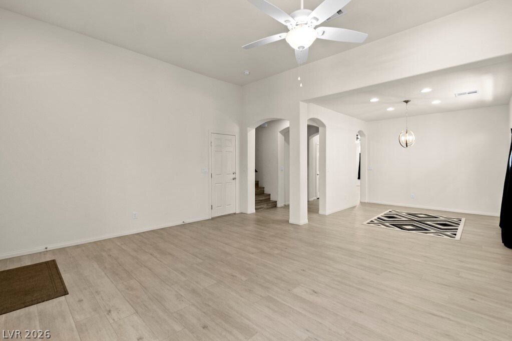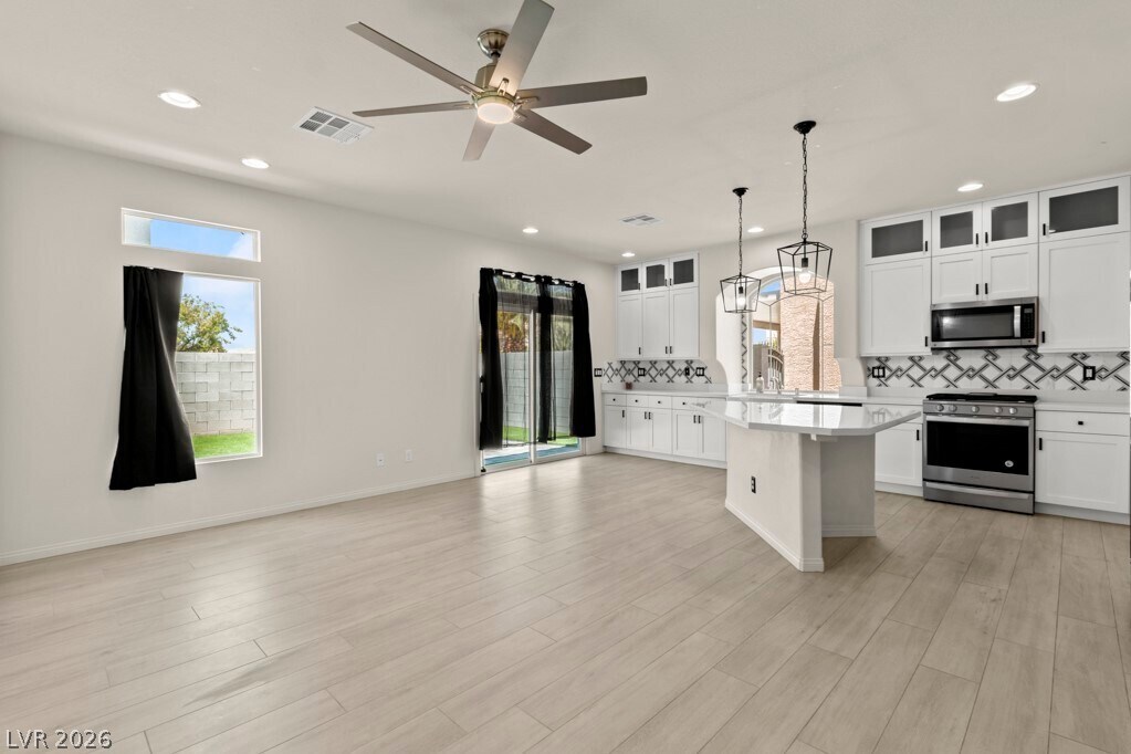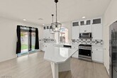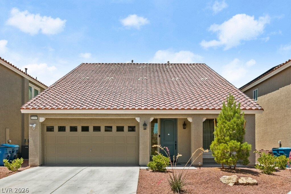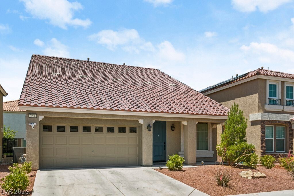 This hard-to-find floor plan includes two primary suites—one on the upper level and one on the lower level—making it perfect for versatile living. The home boasts three bedrooms, three full baths, and a large loft. Featuring stainless steel appliances and a spacious layout with tile flooring throughout the first floor, it exudes modern comfort. Enjoy the covered patio in the backyard with a low-maintenance yard. Conveniently located just 20 minutes from the Strip and only 5 minutes from Costco, restaurants, and a market, this home is not to be missed!