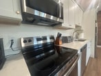 Property Id: 2178395 Furnished Cozy 1 bedroom 1 bath lux loft apartment 5 minutes from Wynn Hospital, Adirondack Nexxus Center. Marble floor entryway and bathroom. The kitchen is equipped with essentials to cook meals and have coffee sitting at the kitchen island or table. Enjoy watching the smart TV that includes free Wi-Fi. The washer/dryer can wash and dry your clothes with one setting. Climate controlled heat and air conditioning can be adjusted in every room for everyone. This unit is in a building of only 5 exclusive units that are newly renovated historical luxury apartments with high ceilings, large windows in all rooms, natural light and mid century furnished apartment. Zoned cooling and heating. Marble floor bathrooms, custom stainless steel kitchen with tons of cabinets. Breakfast bar for sunlit mornings and evening dinner. Steps away from coffee shops, restaurants, train station, Adirondack Nexxus Center, 10 Minutes to Munson Museum. Free on-site or parking lot across the street.