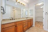 Located in the highly coveted Swift Creek Preserve, this beautifully maintained 5-bedroom, 3.5-bath home offers over 2,600 sq. ft. of modern Florida living. Enjoy hardwood flooring throughout the main level, a dedicated office/5th bedroom, half bath, and an open-concept living room and kitchen. The kitchen features stone countertops, stainless steel appliances, upgraded lighting, tall ceilings, pantry, gas range, and a large island with seating for 4-5. The first-floor primary suite includes a dual-sink vanity, soaking tub, tiled walk-in shower with glass enclosure, and a spacious walk-in closet. Upstairs offers a secondary living area, three additional bedrooms--one with an en-suite--and a full bath with shower-tub combo. Fresh paint throughout enhances the bright, airy feel. Additional
