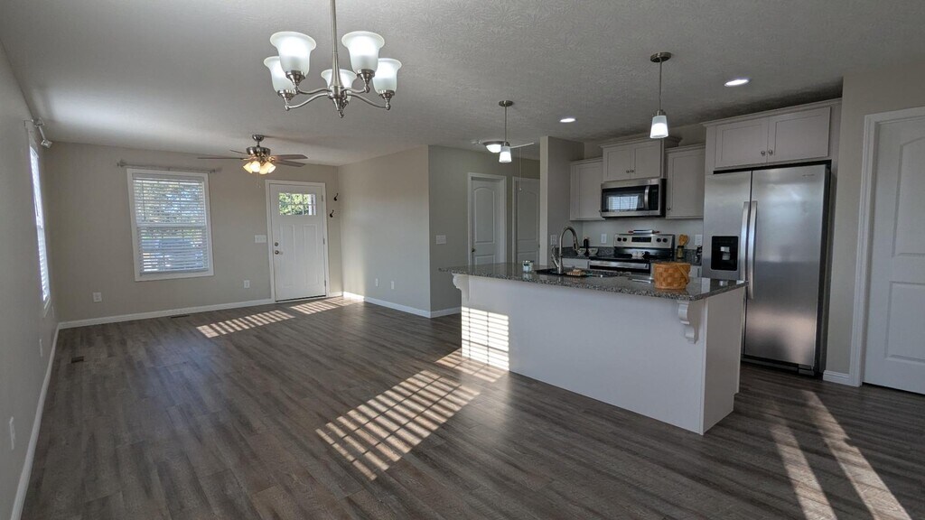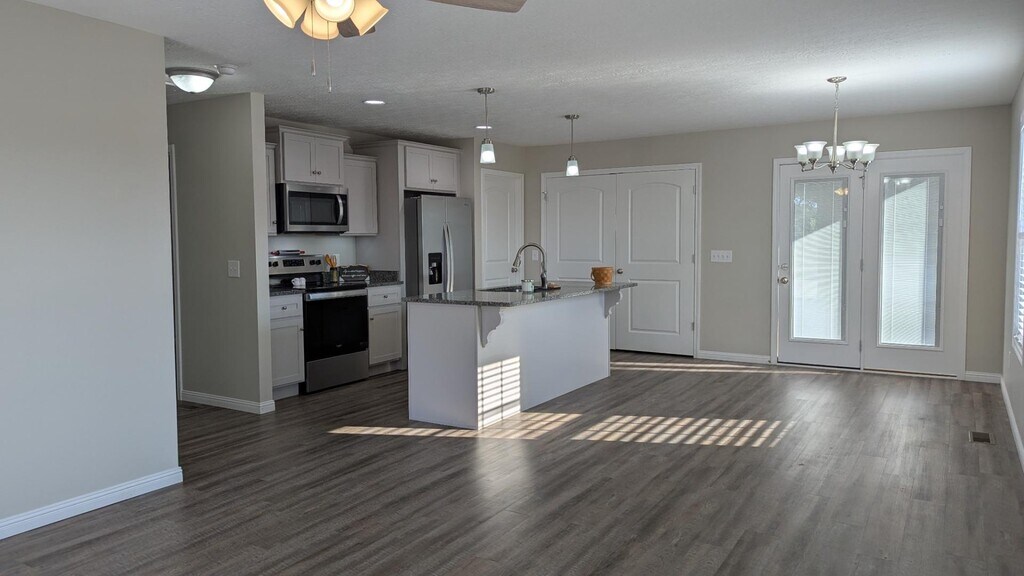 Welcome to this charming home for rent nestled on nearly two acres in the quiet Baker Perdue Estates community. Built in 2021, this single-level ranch offers the perfect blend of comfort, privacy, and convenience. Inside, you’ll find three spacious bedrooms and two full bathrooms, designed with an open-concept floor plan that makes daily living easy and inviting. The kitchen features modern appliances, plenty of counter space, and a layout that feels fresh and functional. Just outside, a wrap-around porch invites you to unwind with your morning coffee or enjoy sunset views across your expansive 1.77-acre property. The large lot provides plenty of room for gardening, outdoor activities, or simply taking in the peace and quiet of the surrounding countryside.