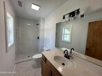 Beautiful waterfront home with deep water boat slip. Not in a flood zone, this property boast views of Topsail Inlet, the ICW, Ocean and surrounding marshes. Huge old school oak tree accents the backyard and provides shade for this truly unique property. This home has been renovated inside and out. New black windows with oversized trex deck to enjoy the ocean breeze and to watch the boats go by. Inside new LVP flooring throughout the main living areas. New Whirlpool Appliances, Quartz countertops, tile backsplash and new light fixtures throughout. Guest bathroom has dual sinks with but and tile walls. Two generous size bedrooms, laundry room and primary bathroom with full tile shower. NO HOA and waterfront dock make this home the perfect waterfront retreat. Contact today for a private tour. Applicants must fill out a background check and pay an application fee in advance before touring the home. No pets.