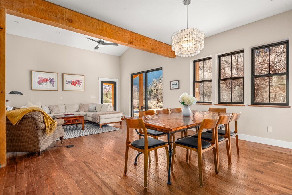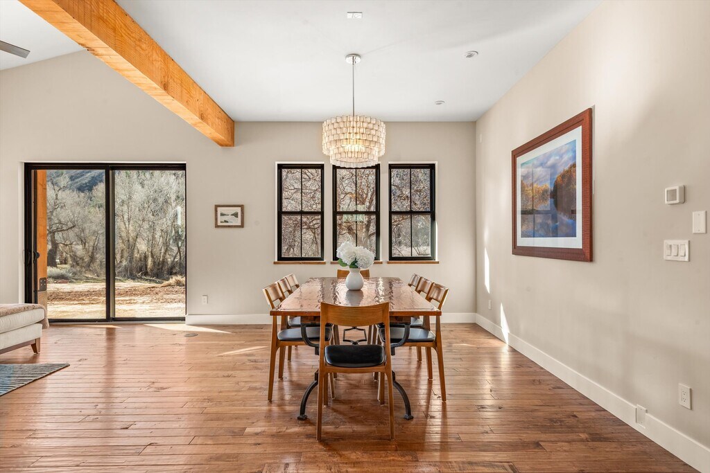 This newly built mountain modern home is located just steps away from the Gold Medal Frying Pan River. Perched on 4.5 acres and surrounded by the ''seven Castles'' red rock formation and the river, makes this a true Colorado back-country experience, while being just five minutes from downtown Basalt. The open concept living room, dining room and kitchen makes a great area for friends and family to gather. With three bedrooms, 2.5 bathrooms, a media room and office, there is plenty of space for everyone. Walk down the lane to the home's private 500' river access. Just a five-minute drive to all the restaurants and shops in downtown Basalt, 10 minutes to the Roaring Fork Club or 25 minutes to Aspen. Make this your next vacation home and stay a month or the entire summer season. Available all year.