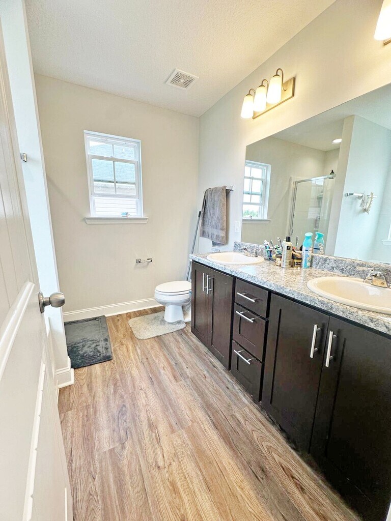 This beautiful two-story residence offers an ideal blend of space, comfort, and modern living. This 3-bedroom, 2.5-bathroom house is designed to meet all your needs. As you enter, you'll be greeted by a warm and inviting living space, perfect for relaxing or entertaining guests. The open floor plan seamlessly connects the living areas, ensuring a comfortable flow throughout the home. The well-appointed kitchen is a chef's dream, featuring a large pantry for ample storage and modern appliances to make meal preparation a breeze. Adjacent to the kitchen is a spacious dining area, perfect for any meal or gathering. Upstairs, you'll find three generously sized bedrooms, offering a peaceful retreat for every member of the household. The main suite includes an ensuite bathroom, providing a private oasis with all the comforts you desire. Two additional bedrooms share a well-designed full bathroom, ensuring convenience and privacy for all. Step outside to discover the expansive fenced-in backyard, an ideal space for outdoor activities, gardening, or simply unwinding in the fresh air. The large yard provides endless possibilities for creating your personal outdoor haven. The attached two-car garage offers secure parking and additional storage, adding to the home's practicality.