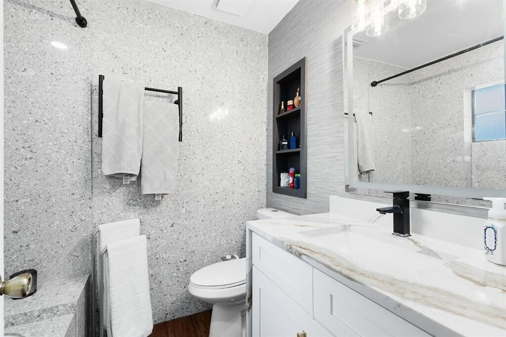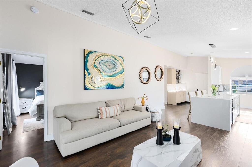 Fully Renovated Canalfront Home with Direct Access to the East Lake Toho Chain of Lakes! Located on a peaceful cul-de-sac,this beautifully upgraded home features an open floor plan with vaulted ceilings,luxury wood-look flooring,and abundant natural light. The showstopping kitchen offers 42” cabinets,a large island with breakfast bar,quartz countertops,a deep blue quartzite backsplash,modern lighting,a quartz composite single-bowl sink,a Crystal quartzite dry bar,and new stainless steel appliances. The spacious master suite includes serene canal views,a walk-in closet,and a fully renovated en-suite bathroom with quartz counters,shower walls,and designer wallpaper. The guest bathroom is also upgraded with quartz and wallpaper accents. Enjoy Florida outdoor living with a covered,screened-in patio and a brand-new covered wood deck with pergola (2024)—perfect for entertaining. The Lanai has Tile,The corner lot offers ample space for a pool,fire pit,or summer kitchen. BONUS: The garage has been professionally converted into a private in-law suite complete with a full bathroom featuring quartz shower walls and vanity,a kitchenette with quartz countertops,and an undermount stainless steel sink. Additional upgrades include: New A/C (Dec 2022) Tankless water heater (2023) Backup power system Hardwood flooring throughout the home Laminate flooring in bathrooms NO HOA. Launch your kayak,jet ski,or bass boat from your backyard and enjoy direct water access. Ideally located near Historic Downtown St. Cloud,U-Pick farms,restaurants,and shopping. Just 20 minutes to Lake Nona,30 minutes to Orlando International Airport,and 40 minutes to beaches and world-famous attractions. Don’t miss this move-in-ready canal front gem packed with upgrades and waterfront charm! MLS# S5130190