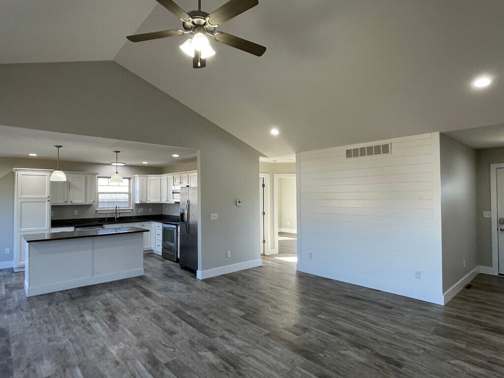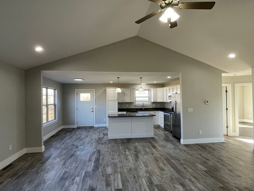 Now accepting applications for this well-maintained 3 bedroom, 2 bathroom home located at 106 Kennedy Court in Waynesville, MO. Built in 2020 and situated on a .22 m/l acre lot, this property is tucked away on a quiet cul-de-sac within the Waynesville School District. The exterior features composition roof shingles, vinyl siding with custom stone accents, insulated windows, a covered entrance, and a rear chain link fenced yard. A two-stall garage provides convenient parking and storage. Upon entry, there is a functional space ideal for a drop zone or bench seating area for backpacks and reusable grocery bags. The living room boasts a vaulted ceiling, large windows that allow for ample natural light, a ceiling fan, and laminate flooring that flows throughout the main living areas, creating an open and inviting atmosphere. The kitchen is thoughtfully designed with a center island, granite countertops, custom cabinetry with soft-close features, a farmhouse sink, stainless steel appliances, and a cozy dining area. Just off the kitchen is access to the side balcony, perfect for grilling and outdoor dining while overlooking the fenced backyard. This home offers a desirable divided bedroom floor plan. The primary suite features a tray ceiling with ceiling fan, abundant natural light, and a private ensuite bathroom complete with a raised toilet with bidet attachment, tub/shower combo, dual vanity, linen storage, and a spacious walk-in closet. The laundry area is conveniently located just off the primary suite. On the opposite side of the home are two additional bedrooms with large closets and a second full bathroom with a single vanity located in the hallway. The massive unfinished walk-out basement offers excellent potential for additional living space or storage. It is heated and cooled, has working electrical, and provides direct access to the rear yard. This property is currently accepting applications while the previous tenants complete their move-out process. To get started, text West Gate Rentals, LLC at .