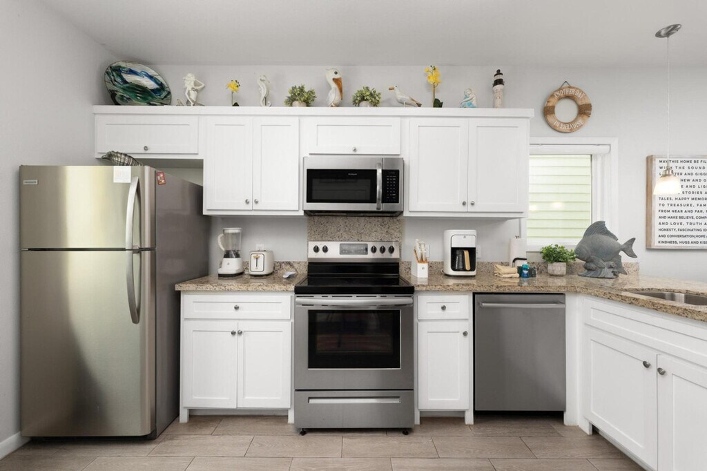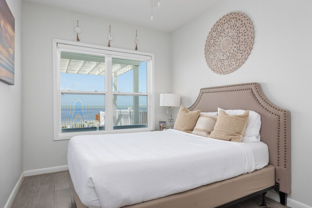 Feel at home in this waterfront vacation escape, Sol-Mate! Set in a gated community on the Laguna Madre Bay, this 3-bedroom, 2-bath home is kid-friendly and boasts inviting living spaces. This home is fully equipped with stainless steel appliances, a breakfast bar with seating, a dining table with seating for six, cooking basics, dishware and flatware, a coffee maker, toaster, blender, knife set, and kettle. Enjoy the inviting living area with a stylish sofa, a wall-mounted smart TV with Netflix, and sliding door access out to the patio and backyard overlooking the bay. Other amenities include a patio with seating, a charcoal grill, 3 Smart TVs with Netflix, a dining table, ceiling fans, board games, central A/C, a washer and dryer, laundry detergent, complimentary toiletries, linens and towels, keyless entry, beach towels, a hair dryer, and an iron and board. For those traveling with kids, a pack and play, booster seat, noise machine and night light, utensils and serving dishes, games and toys are included. Guests will enjoy access to a shared outdoor pool and hot tub located just steps away, as well as a basketball court, playground and fishing pier with cleaning station. This home is pet-friendly with a fee. Centrally located, this home is a quick 10-minute drive to grocery stores, beaches, and restaurants. Nearby attractions include the Port Isabel Lighthouse (2.2 miles), Dolphin Watch Point (5.4 miles), Beach Park At Isla Blanca (5.5 miles), South Padre Island (6.8 miles), Pirate's Landing Fishing Pier (7.3 miles), Sea Turtle, Inc. (8.5 miles), Palo Alto Battlefield National Historical Park (20.0 miles), and the SpaceX Launch Facility (36.4 miles). Outdoor recreation options include the Laguna Vista Nature Trail (5.0 miles), South Padre Island Birding And Nature Center (8.7 miles), and the Laguna Madre Nature Trail (9.0 miles). Please be mindful of neighbors and respect quiet time from 10pm-7am. The bay is not suitable for swimming due to the daily tides. There’s a Ring doorbell facing the front entry, a second camera facing the parking space, and a third camera facing the back patio and yard. [SI]