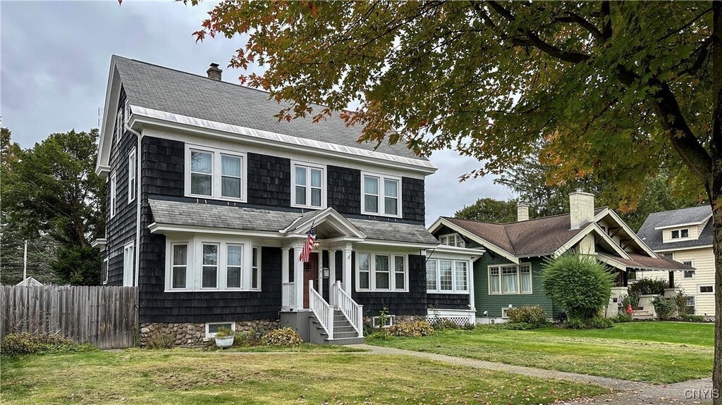 This Colonial style home is cute as can be and loaded with charm. With 3 bedrooms and 1.5 baths,it has been very well maintained and it truly shows the minute you walk in. Character flows throughout the home,giving it that warm and inviting feel you don’t find every day. The main floor features the original Rochester hardwood floors (they’re stunning in person),a galley style kitchen,formal dining room,half bath,cozy living room with a fireplace,a dedicated office,sun porch,and plenty of space for entertaining or simply spreading out and relaxing. The kitchen was fully renovated in 2016 with quartz countertops and stainless steel appliances,so you get the charm of an older home paired with the modern updates you actually want. Upstairs,you’ll find 3 generously sized bedrooms and a full bath. Need more space? The finished attic adds even more usable square footage for storage,a bonus room,playroom,or whatever fits your needs. Outside,enjoy a large fully fenced yard along with a covered back patio area that’s perfect for relaxing,grilling,or hosting friends. The garage is conveniently located behind the house. Overall,this home is the perfect blend of character,updates,and comfortable indoor/outdoor living. Plus,it’s in a great location close to shopping,schools,parks,and restaurants.