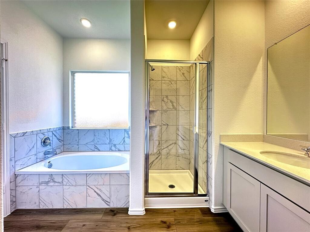 Welcome to 106 Maravillas Bend, a beautifully designed single-story home located in the desirable community of The Colony in Bastrop. Built in 2024, this 4-bedroom, 2-bathroom residence offers approximately 1,815 square feet of comfortable living space. The open-concept layout features a spacious living and dining area that flows seamlessly into a modern kitchen complete with a center island, gas cooktop, stainless steel appliances, and ample cabinet storage. The private owner’s suite is thoughtfully situated at the rear of the home and includes a dual-sink vanity, soaking tub, separate walk-in shower, and a large walk-in closet. Three additional bedrooms and a full bathroom are located on the opposite side of the home, offering both privacy and functionality. Additional highlights include high ceilings, neutral finishes, in-unit laundry, and a two-car garage. Step outside to enjoy a covered patio that overlooks the backyard, perfect for relaxing or entertaining. The home also features a sprinkler system and backs to a wooded area, providing additional privacy. Residents of The Colony enjoy access to a wealth of community amenities including a pool, playground, disc golf course, and an on-site elementary school. Conveniently located near major employers and local attractions, this home is just minutes from SpaceX, The Boring Company, and the Bastrop 552 Film Studio development. Everyday essentials are within easy reach with H-E-B Plus! less than five miles away, and a variety of dining, shopping, and entertainment options can be found in historic downtown Bastrop. Nearby recreational opportunities include Bastrop State Park, Lake Bastrop, and the Colorado River, offering endless ways to enjoy the outdoors.