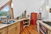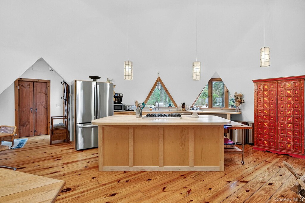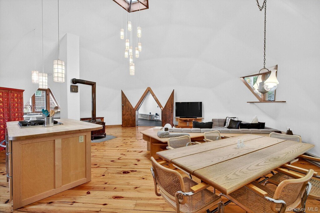 A truly one-of-a-kind residence and rare opportunity,this exceptional home offers a seamless blend of architecture and art in the heart of Woodstock,walking distance to Tinker Street,yet set privately on 1.73 secluded acres just minutes from the village. Designed as a fusion of a Frank Lloyd Wright–inspired contemporary addition and an original Buckminster Fuller–style geodesic dome,the property delivers over 3,300 sq. ft. of light-filled living space with remarkable character and a spacious,flexible layout ideal for both everyday living,work-from-home,and the Hudson Valley lifestyle. Open hardwood floors,soaring Douglas fir ceilings,and walls of windows create an effortless indoor–outdoor flow overlooking the natural landscape. A lofted gallery office leads to the primary suite with private gas stove,steam shower,dual vanities,and a generous walk-in closet. With three well-appointed bedroom suites in the downstairs wing,including two additional guest suites on the lower level,the home offers privacy and comfort for residents and guests alike. Each lower-level suite features a private bath and direct access to the outdoor space and stone patio. The original dome includes a separate entrance,full bath,modern kitchen,and wood-burning stove,ideal for a studio,guest space,or additional living area. A Central Park–style gazebo and mature grounds complete this serene setting. Embrace the luxury of living within walking distance to Woodstock’s renowned dining,galleries,and music venues while maintaining exceptional privacy. A rare offering. Furnished option available. Based on information submitted to the MLS GRID as of [see last changed date above]. All data is obtained from various sources and may not have been verified by broker or MLS GRID. Supplied Open House Information is subject to change without notice. All information should be independently reviewed and verified for accuracy. Properties may or may not be listed by the office/agent presenting the information. Some IDX listings have been excluded from this website. Prices displayed on all Sold listings are the Last Known Listing Price and may not be the actual selling price.