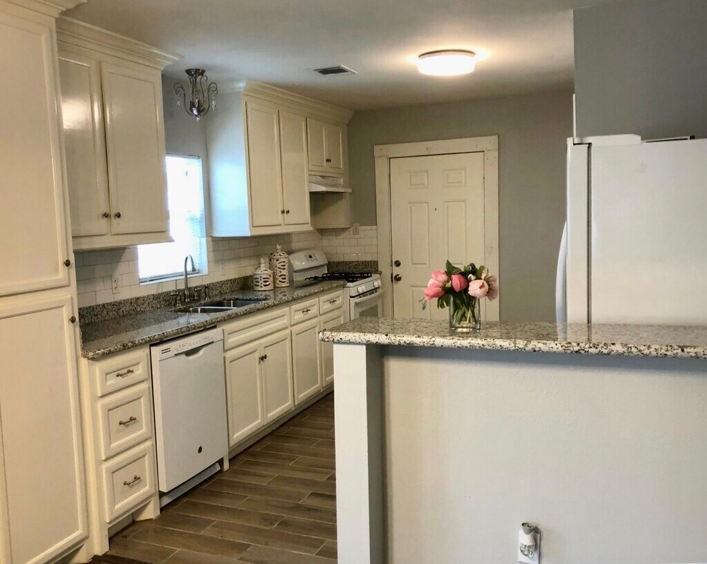 Charming home in East End Management District near downtown,with Metro Rail Line within walking distance. Modern updates blend seamlessly with vintage charm. Features include ceiling fans,central air,granite countertops,lots of cabinets,and spacious kitchen. Wood look floors and rounded archway add warmth to the clean,modern design. Property is fully fenced for privacy and security. Washer/dryer,refrigerator,and middle garage space included. Enjoy proximity to great restaurants and entertainment. MLS# 7843275