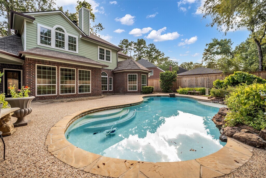 If you are looking for location,this is one of the best locations in The Woodlands. This stunning property blends elegance with plenty of natural light and bright neutral tones. Updated lighting,recently painted,the kitchen features remodeled quartz countertops,stainless appliances and brick backsplash. The bathroom recently updated,replaced A/C unit and the pool equipment. This home has 4 beautiful bedrooms,3 full baths and 1 half bath. The primary bedroom is down with a custom closet system and with an awesome view of the pool. Natural light pours through the windows,the upstairs features 3 lavishly sized bedrooms,with two full bathrooms,amazing space for a game room and a built-in study nook. As you approach the house,the front lawn immediately sets the tone with lush green,cut to perfect,sidewalks and flower beds. A smart irrigation system ensures the lawn is always hydrated. This home is just ready for you to move in! Buyer must independently verify all measurements. MLS# 13494644