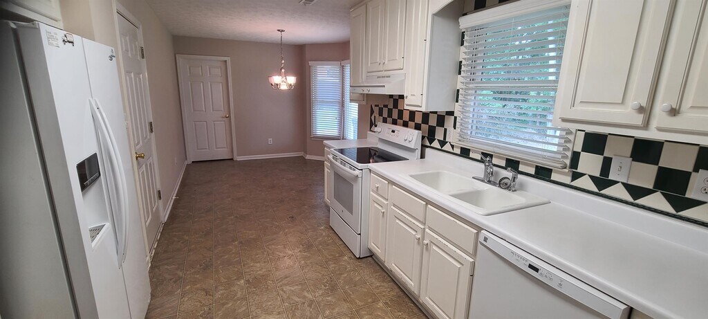 Spacious 3 bedroom Ranch with screened patio looking out at peaceful backyard. Large family room, separate dinning room. In-line kitchen, plenty of cupboards, pantry, all appliances, countertop microwave (separate shelf). Kitchen dinner area with bay window. LVP flooring in kitchen and laundry. Designated Laundry room and water heater off kitchen. Freshly painted. 2-car garage,step-down entry off kitchen. Automatic garage door open, windows in garage. Renovated 16x12 secured storage shed with shelving and windows, and small ramp for easy storing. There are two full bathrooms. Master bath has soaker tub. Bay window in master bedroom, overlooks backyard. 2 other bedrooms are approximately the same size. Hall bath has walk-in shower. Dining room would make a great den or office space. Nice front porch, quiet street, on a cul de sac. Great location in McDonough. Close to shopping and Heritage Park. Please have income and employment verification ready prior to scheduling a showing appointment. Pets welcome with a $250 pet fee and $50 extra per month per pet. Certain breeds excluded. Applicants may email any and all documentation to: ---. Conveniently located in McDonough. 3 Bedrooms, 2 bathrooms, 2-car garage, storage shed, screened patio. Eat in kitchen with all appliances. Laundry room w/ hook-ups. New Carpet (except bedrooms), new floor in kitchen.