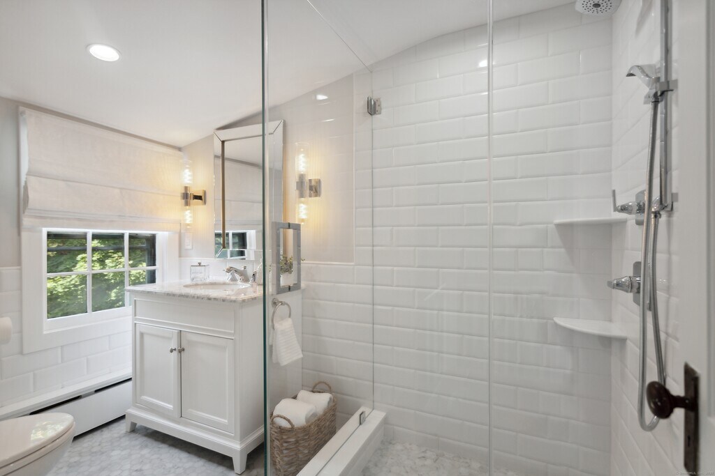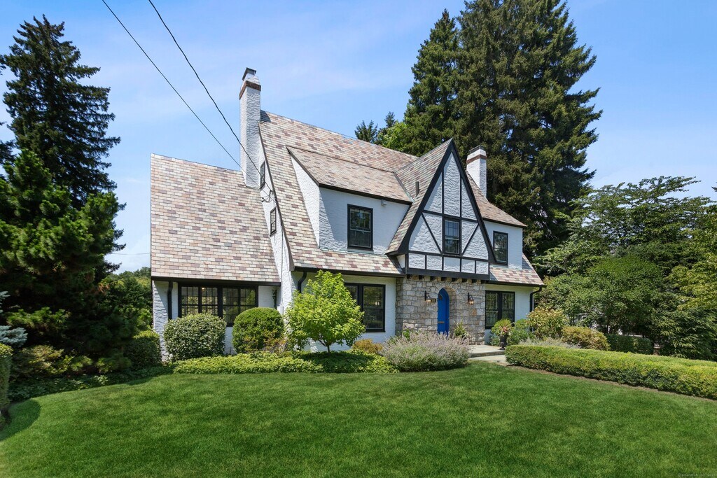 Call for Availability - Beautifully renovated and modernized in 2022, this classic Tudor on one of Greenwich's premier in-town streets is located just moments from schools, train, shops, and the hospital. Inside, discover a new kitchen, restored hardwood floors, updated lighting, and graceful arches that create a seamless flow throughout. The primary suite offers a newly renovated bath and spacious dressing room, while four additional bedrooms and two updated baths complete the 2nd and 3rd floors. The pristine lower level includes exterior access, laundry, generous storage, a 1-car attached garage, and a separate 2-car detached garage. Outside, a stone terrace overlooks lush level lawns and landscaped gardens-an entertainer's dream with exceptional privacy. MLS# 24133352