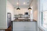 In the Heart of West Chester borough. This Front facing apartment 3A on the 3rd floor offers seclusion as well as convenience to Town Center, 1 off-street parking space and common area in rear yard is quite charming. Completely renovated property in 2020. Entrance lobby and mail area. Entrance foyer, stairs to 3A. Front door entrance into the apartment opens into an open floorplan to a Living-room, /Great-room kitchen with breakfast bar possibilities, Quartz counters and breakfast bar. Steel appliances including gas range and dishwasher. Full bathroom with stall shower. Huge 1 bedroom room for office area and door to fire-escape presents additional natural light as well as another access from this apartment. Bedroom connects to the fire-escape entrance/exit, down to the off-street parking and common area in the rear yard. Beautiful, finished hardwood floors, stain-less steel appliances, and in unit laundry facilities. Plenty of natural light with existing lg windows. Tenant pays for electric and gas only. Excellent opportunity to walk to town yet enjoy your privacy. Only 1 full-time college student can reside here. Indoor cats ok, no Dogs. Please only inquire if you meet the minimum application requirements: At least 2-3 moths rent up front, gross monthly income at least 2.5 x the rent, credit score of 650+ Very rare to find Borough apartments offering Character and charm as well as modern condition within walking distance to town or WCU.