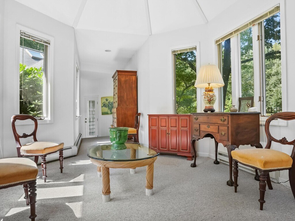 Call for Availability - INCLUDED ONE GARAGE SPACE! Brand NEW Washer/Dryer Unit! Prime South Wilton location. Beautiful fully furnished 900SF one bedroom apartment/cottage. Family Room has fireplace with Dining Area, One Bedroom on 2nd floor, 1 full Bath on Main floor, and galley kitchen. Large Office/Living Room space plus 3 closets. Tons of windows, doors and natural light. Peace and quiet on 2 acre property surrounded by mature plantings and lovely landscape. This is a very special opportunity! MLS# 24119391
