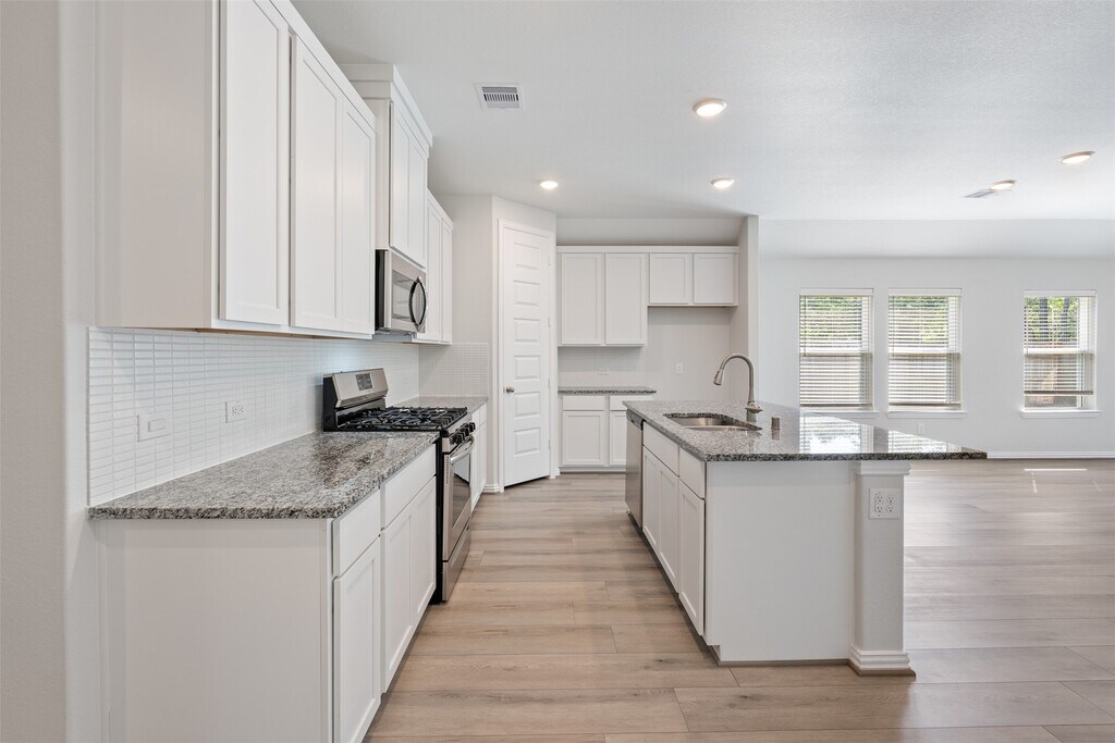 Ask about our limited-time lease special available this week only and secure this beautiful home before it’s gone! Schedule your private tour today. Welcome to easy living in The Woodlands Hills! This stunning one-story home offers a spacious 4 bed,2 bath layout with stylish finishes throughout. Nestled on a quiet cul-de-sac with no rear neighbors,it provides privacy and plenty of room to relax or entertain outdoors. The open-concept layout flows from the kitchen to the family room,creating a bright,inviting space. The kitchen features modern finishes and great storage,while the private primary suite offers a relaxing retreat. Step outside to the covered patio and enjoy your secluded backyard with an expansive feel rarely found in the neighborhood. Enjoy resort-style amenities including a 17-acre Village Park,hiking and biking trails,pools,and more. Conveniently located near medical centers,shopping,and dining—with full access to the gym,Olympic lap pool,and lazy river. MLS# 33328834