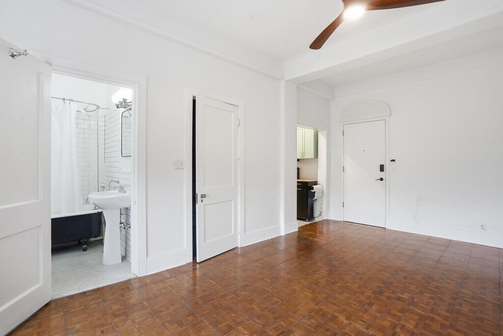 Charming studio condo located right on Forsyth Park in the heart of Historic Downtown Savannah! This efficient space features classic parquet flooring, a galley kitchen with a newer range, microwave, and refrigerator, plus a convenient walk-in closet and Murphy bed system with added storage. Enjoy comfort with a newer wall-unit HVAC. The secure, coded-entry building offers free community laundry and includes one assigned parking space—a rare perk downtown. Just minutes from SCAD, shopping, restaurants, and bars. Water and trash are also included! Pets considered on a case-by-case basis.