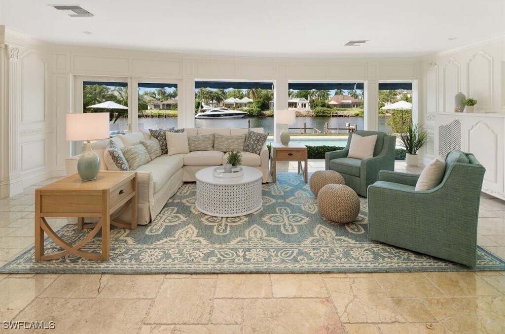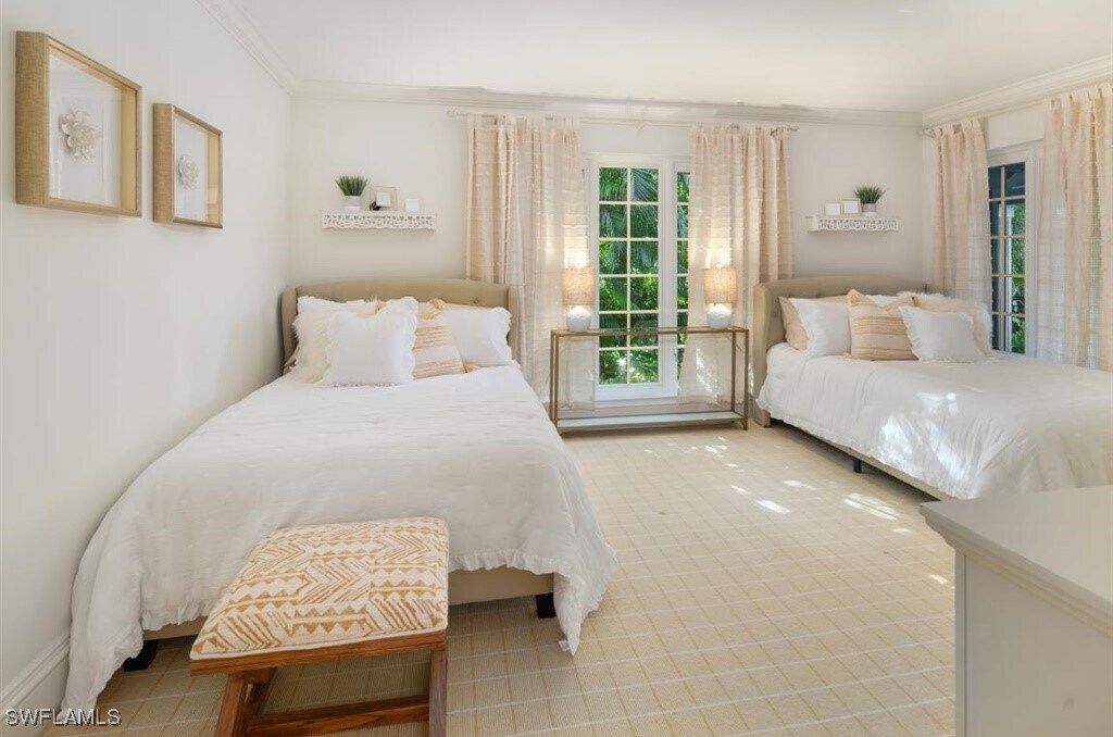 Available for annual or off-season rental at $20,000/month,or for the 2026-2027 season at $35,000/month. Situated on approximately 110 feet of waterfront,offering scenic views of one of the widest points of Runaway Bay in Port Royal,this unique 3-bedroom,3-bath property is truly a great vacation home. Elegantly set back on the exclusive,tree-lined Galleon Drive,the home features hurricane impact windows and doors,a chef's kitchen,spacious living and family rooms,and has been freshly painted and newly furnished with sophisticated,beach-style light-colored furniture. The home boasts chiseled-edge limestone flooring and abundant natural light throughout its open layout. Located in one of the most sought-after areas of Naples,it is close to the finest shopping,art galleries,and dining. Walk to the beach or relax and entertain around your pool while enjoying mesmerizing sunset views.