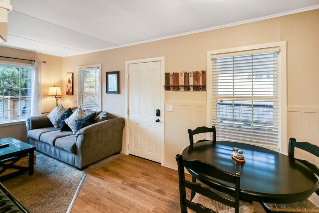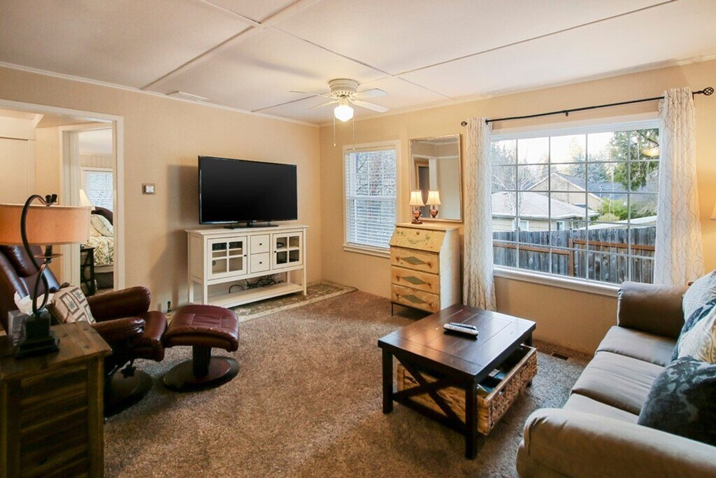 Daisy Creek Cottage: This fully furnished 2bd/1ba, 900 sq. ft. home is snuggled back in a quiet, wooded lot, with spacious, fenced yard that backs up to Daisy Creek. Two bedrooms plus a laundry room with space for a desk. The cozy dining space sits next to the well equipped kitchen with gas stove. The comfortable living room includes flat screen, smart TV. Includes washer and dryer. Sit out on the front patio and watch the world go by. Close to downtown, shopping, restaurants, wine tasting, Britt festival, and walking trails. Costs There is a $350 non refundable cleaning fee, a refundable security deposit equal to one month of rent, and a 3.5% monthly admin fee, a $300 monthly utility fee which covers all utilities, plus streaming TV subscription, Wi-Fi, trash and landscaping. Renters insurance required. TENANT PAID UTILITIES: None outside of the $300 utility fee mentioned above unless unless they are over reasonable amount (this amount is stated in the Rental Agreement) SHOWINGS are by video tour only when occupied to respect our tenant's privacy. APPLIANCES include; Stove/oven, Dishwasher, Microwave, Garbage disposal, A/C, Washer/Dryer. APPLY at or CALL us at to reserve. SMOKING is not allowed in or around this property. A $350 fee will be charged if there is smoking in the home. PETS One pet is allowed with an additional $100 cleaning fee (size and breed restrictions may apply). RENT includes all utilities, plus streaming TV subscription, wifi, trash and landscaping. In addition, there is a $350 non refundable cleaning fee, a refundable security deposit equal to one month of rent, and a 3.5% monthly admin fee. TENANT PAID UTILITIES None unless unless they are over reasonable amount (this amount is stated in the Rental Agreement)
