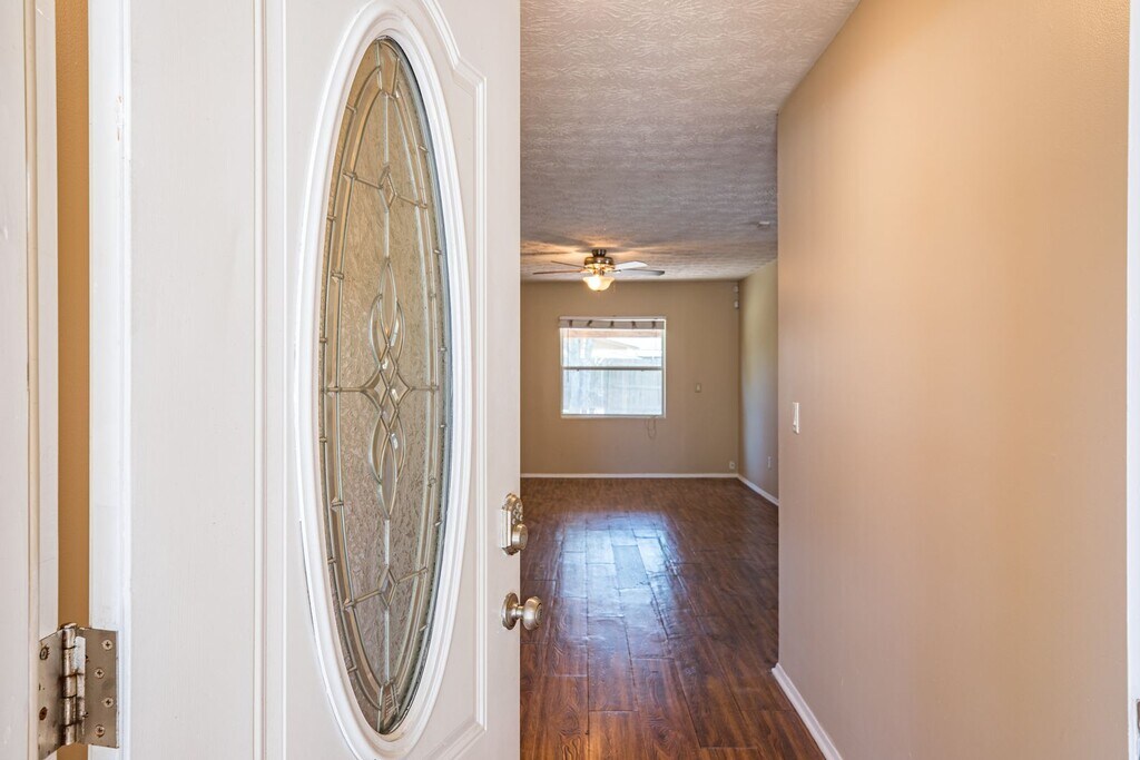 Welcome Home! This Bedroom, 2 Bathroom home checks off all those "wants" on your list! laminate wood flooring throughout common areas, modern tile in the kitchen, and new carpet in 4 bedrooms! Kitchen and both bathrooms are all updated. Large backyard with covered porch. You wont want to miss this one! Sorry, no cats. Dogs under 25lbs with approval.