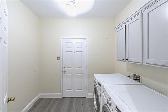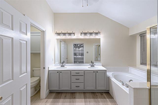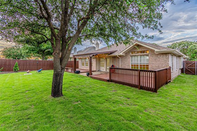 Discover this beautifully updated single-story home situated in desirable Frisco ISD. Once inside you'll be invited by an open concept formal living and dining area and gorgeous wood-look laminate flooring which flow throughout the home. Make your way into the beautifully updated kitchen equipped with granite counter-tops, dual ovens, decorative tile back-splash and modern pendant lighting illuminating the breakfast bar—perfect for both casual dining and entertaining. The spacious and light filled family room is anchored by a cozy fireplace and offers effortless flow into the kitchen and breakfast area, making it ideal for gatherings with friends and family. Relax and unwind in the serene primary bedroom complete with a tranquil ensuite bath featuring updated quartz counter-tops with dual sinks, garden tub, separate shower and generously sized walk-in closet. Three additional bedrooms share a well appointed full bath with contemporary lighting. Enjoy spending time outdoors in your fully fenced backyard with an expansive deck and covered patio. Additional updates include Roof, Gutters and Sod. Desirable location with easy access to highways, dining and entertainment. Rental fee includes lawn and landscape care.