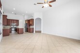 Highly desirable 1-story living, pool home. 4/3 + 3 car garage. Freshly painted and neutral throughout! Large island kitchen w/ gas cooking and NEW French door stainless refrigerator. 3-way split with 4th bedroom in front of the house and a full adjacent bath. 2 secondary bedrooms in a private hallway w/ adjacent full bath. Primary bedroom in rear of home w/ huge en-suite bath and double walk-in closets. Easy maintenance w/ tile and laminate flooring - no carpet! Newer AC.