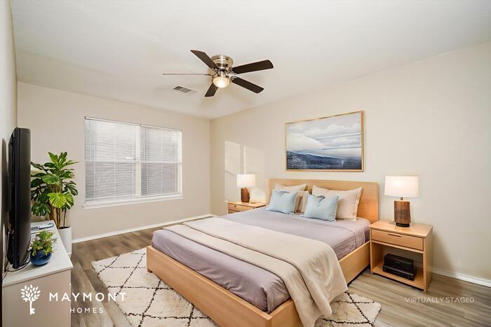 MOVE-IN READY Monthly Recurring Fees: $25.00 - Smart Home This 3-bedroom, 2-bathroom home offers 1,332 square feet of thoughtfully arranged living space in San Antonio, TX. A brick-front exterior paired with a single-car garage creates a welcoming first impression, while the single-story layout keeps everything easily accessible. Inside, LVP flooring runs through the main living areas, complemented by tile in the kitchen and bathrooms for durability and easy upkeep. The main living space opens naturally into the dining area and kitchen, creating a connected layout suited for everyday routines. The kitchen features granite-style countertops, ample cabinet storage, and a full appliance setup, along with a pantry that adds practical storage. Sliding glass doors bring natural light into the space and lead directly to the covered patio, extending the living area outdoors. All three bedrooms are positioned along the same level, offering a clear and efficient layout. The primary bathroom includes a dedicated vanity area, while the secondary bathroom features a tub-shower combination and clean, straightforward finishes. Ceiling fans and neutral tones throughout the home allow the spaces to feel open and adaptable. Located with convenient access to nearby shopping, dining, and major routes connecting to greater San Antonio, this home balances comfort and location with ease. From its functional layout to its inviting indoor-outdoor flow, this property offers a solid foundation for daily living. Apply Now! *Maymont Homes provides residents with convenient solutions, including simplified utility billing and flexible rent payment options. Contact us for more details. This information is deemed reliable, but not guaranteed. All measurements are approximate. Actual product and home specifications may vary in dimension or detail. Images are for representational purposes only. Some programs and services may not be available in all market areas. Prices and availability are subject to change without notice. Advertised rent prices do not include the required application fee, the partially refundable reservation fee (due upon application approval), or the mandatory monthly utility management fee (in select market areas.) Residents must maintain renters insurance as specified in their lease. If third-party renters insurance is not provided, residents will be automatically enrolled in our Master Insurance Policy for a fee. Select homes may be located in communities that require a monthly fee for community-specific amenities or services. For complete details, please contact a company leasing representative. Equal Housing Opportunity. This property is subject to homeowners' association (HOA) governance; restrictions and covenants may apply. This property allows self guided viewing without an appointment. Contact for details.