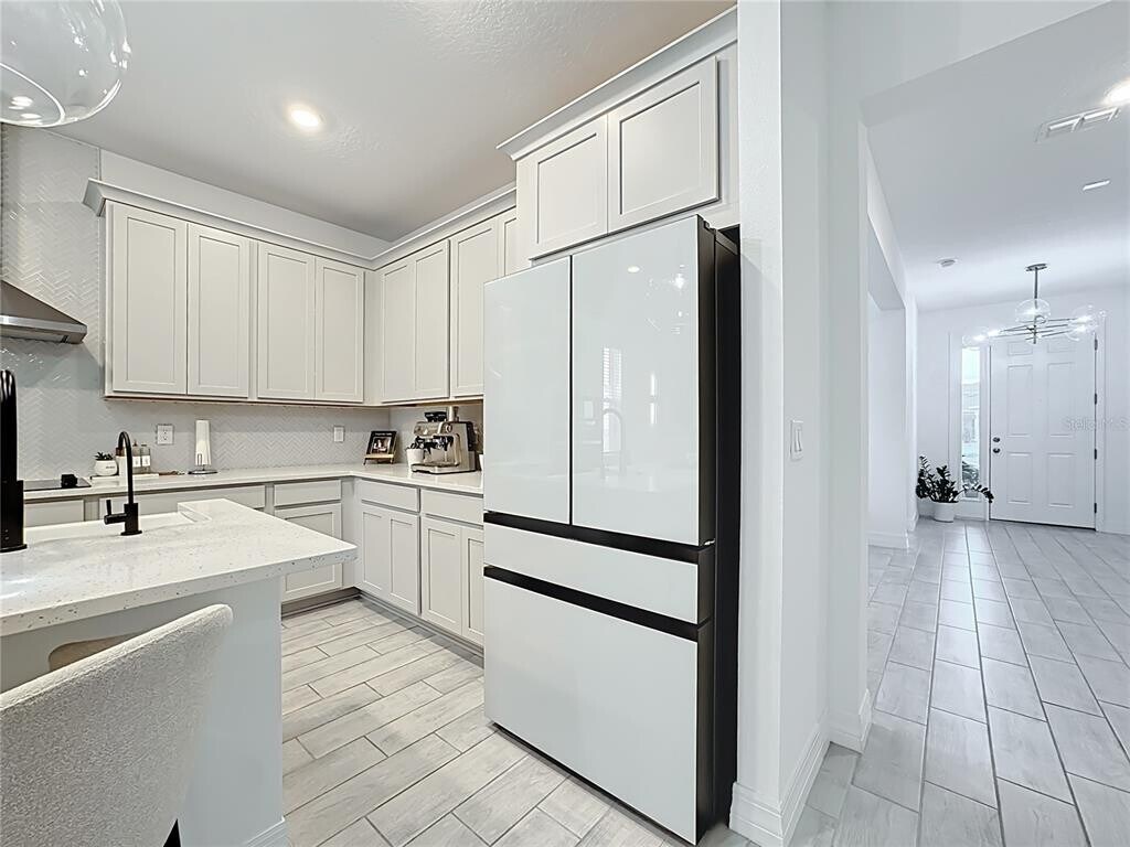 Fully furnished and move-in ready,this beautifully designed one-story home offers 4 bedrooms,2 full bathrooms,and a spacious 2-car garage,all within the sought-after Poinciana floorplan featuring a large great room that flows seamlessly into the gourmet kitchen and café area,perfect for entertaining. The kitchen is a chef’s delight,boasting quartz countertops,a farm sink,built-in wastebasket,and premium finishes. The private owner’s suite includes two walk-in closets and a luxurious en-suite bath,while three additional bedrooms provide flexibility for family,guests,or a home office. Premium upgrades include a whole-home water filtration system,ceramic tile flooring throughout with no carpet,and the rent conveniently covers both high-speed internet and landscaping for added value and ease. Outdoors,enjoy a fenced patio with peaceful lake views,along with community amenities such as a resort-style pool,dog park,and more. Don’t miss this incredible rental opportunity before prices rise!
