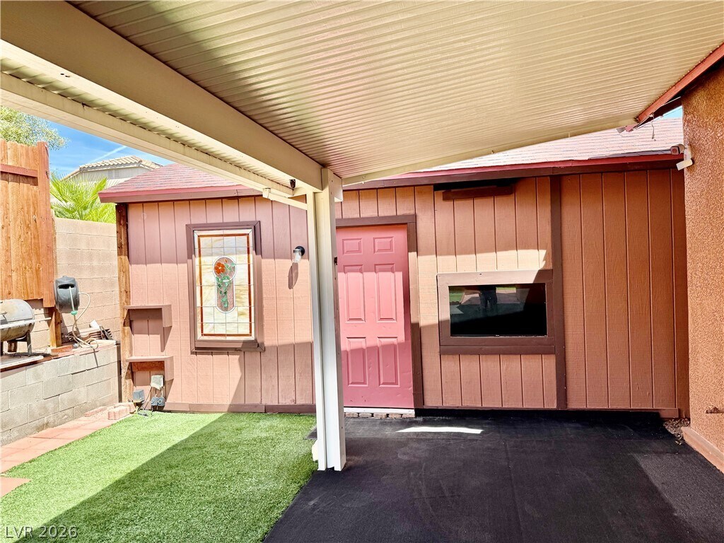 Hard-to-find single-story home with a 3-car garage in a desirable neighborhood! This well-maintained property features 2 bedrooms, 2 baths, plus a versatile den—perfect for a home office, playroom, or flex space. Enjoy tile flooring throughout for easy maintenance and a clean, modern feel. The spacious primary suite offers a ceiling fan, walk-in closet, and an en-suite bath with dual sinks, separate shower, and relaxing garden tub. Step outside to a covered patio—ideal for outdoor living—along with a large storage shed for your extra belongings or toys. Solar and trash are included in the rent, helping keep utility costs down. One small dog under 20 lbs will be considered. MLS ID 2775478