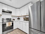 This stunning 4-bedroom, 2.5-bath residence offers 1,908 sq. ft. of thoughtfully updated living space, located just five minutes south of Hurlburt Field.Recent upgrades include a 2021 A/C unit and a 2025 water heater, ensuring comfort and efficiency. The kitchen is a true centerpiece, featuring new white shaker cabinets, luxury quartz countertops, and a classic subway tile backsplash.Throughout the main living areas, you'll find elegant wood-look tile flooring, while all bedrooms feature durable LVP flooring. The upstairs bath is refreshed with a newly tiled shower and quartz vanity, while the primary suite offers a spacious walk-in shower with a stylish wood vanity and quartz top.