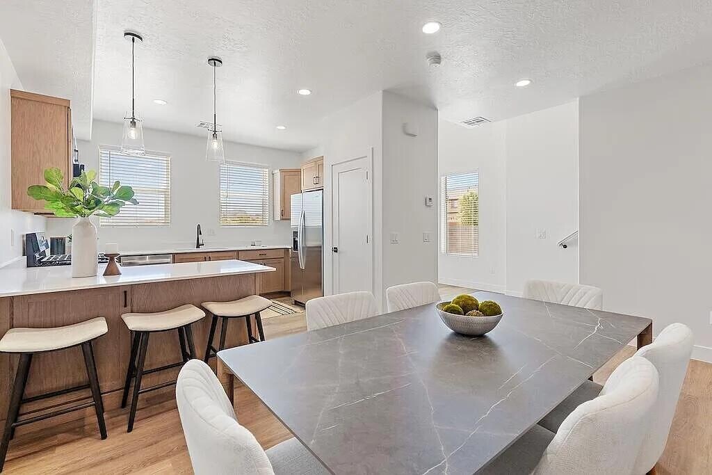 Discover your dream townhouse in the heart of Saint George, UT! This stunning 1,908 square foot residence, built in 2025, offers modern living with an array of exceptional features. With three spacious bedrooms and 2.5 bathrooms, this home provides ample space for comfort and relaxation. Enjoy the convenience of a fully equipped kitchen, complete with a refrigerator, stove, microwave, and dishwasher, as well as a washer and dryer for your laundry needs. Experience luxury in the beautifully designed bathrooms, featuring a walk-in shower that adds a touch of elegance to your daily routine. The double car garage with an automatic door ensures easy access and security for your vehicles. Stay cool during the warm months with air conditioning and ceiling fans throughout the home. As an added bonus, you\'ll receive one year of free internet and a complimentary membership to the prestigious Bloomington Country Club, perfect for enjoying recreational activities and social events. This brand-new development is pet-friendly and smoke-free, providing a welcoming environment for all. Don\'t miss out on this incredible opportunity to live in a modern townhouse with all the amenities you desire. Schedule a tour today and experience the perfect blend of comfort, style, and convenience in this exceptional Saint George community!